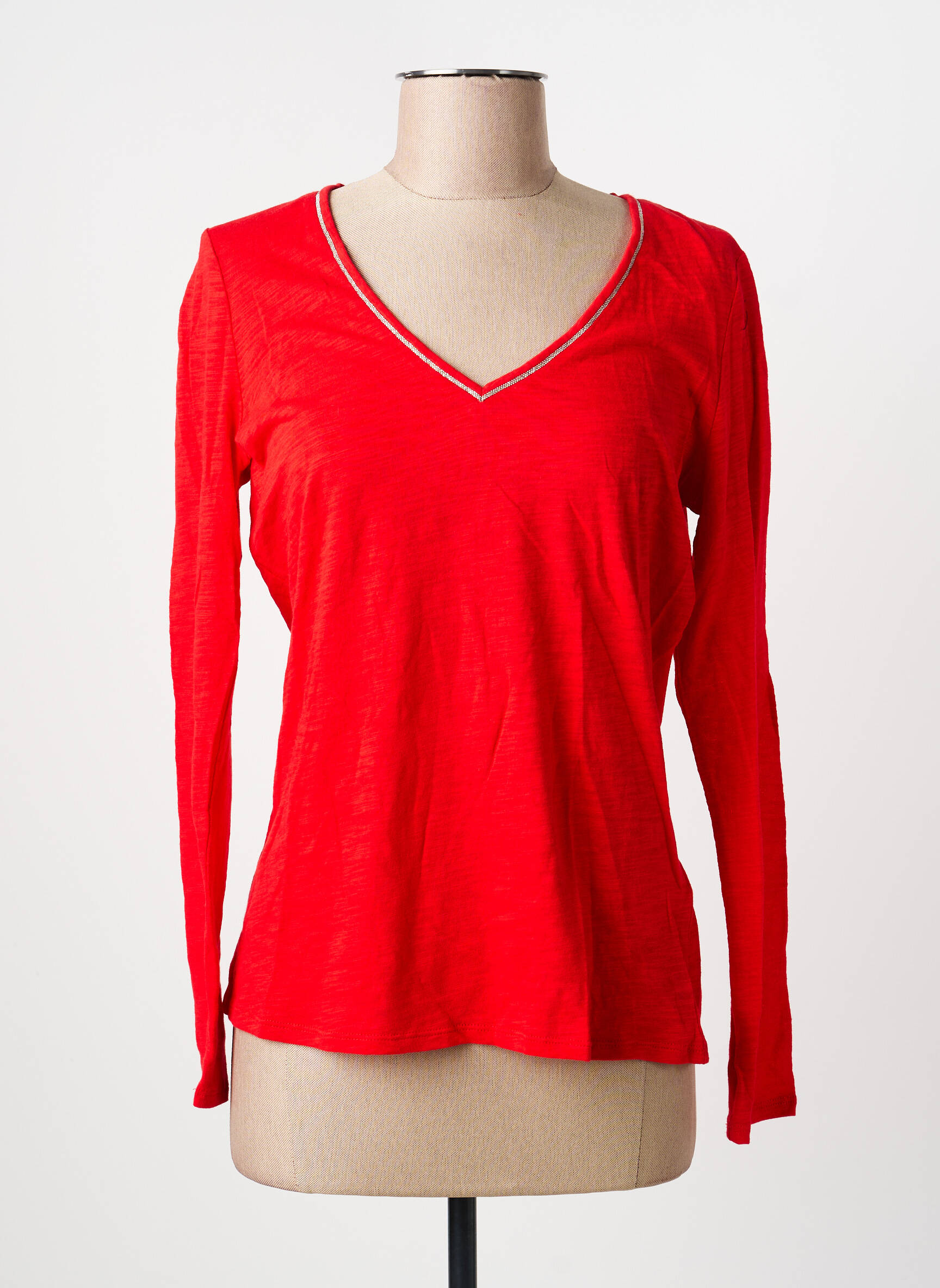 Profitez d'une offre exceptionnelle avec ce top SUD EXPRESS pour femme, idéal pour apporter une touche de couleur à votre garde-robe sans vous ruiner. Ce modèle à manches longues séduit par sa teinte rouge éclatante et son élégant col en V délicatement souligné d’un biais contrastant, pour un style à la fois décontracté et féminin. Son tissu léger et fluide promet un confort optimal tout au long de la journée, faisant de cette pièce une véritable aubaine pour celles qui recherchent un basique tendance à petit prix.