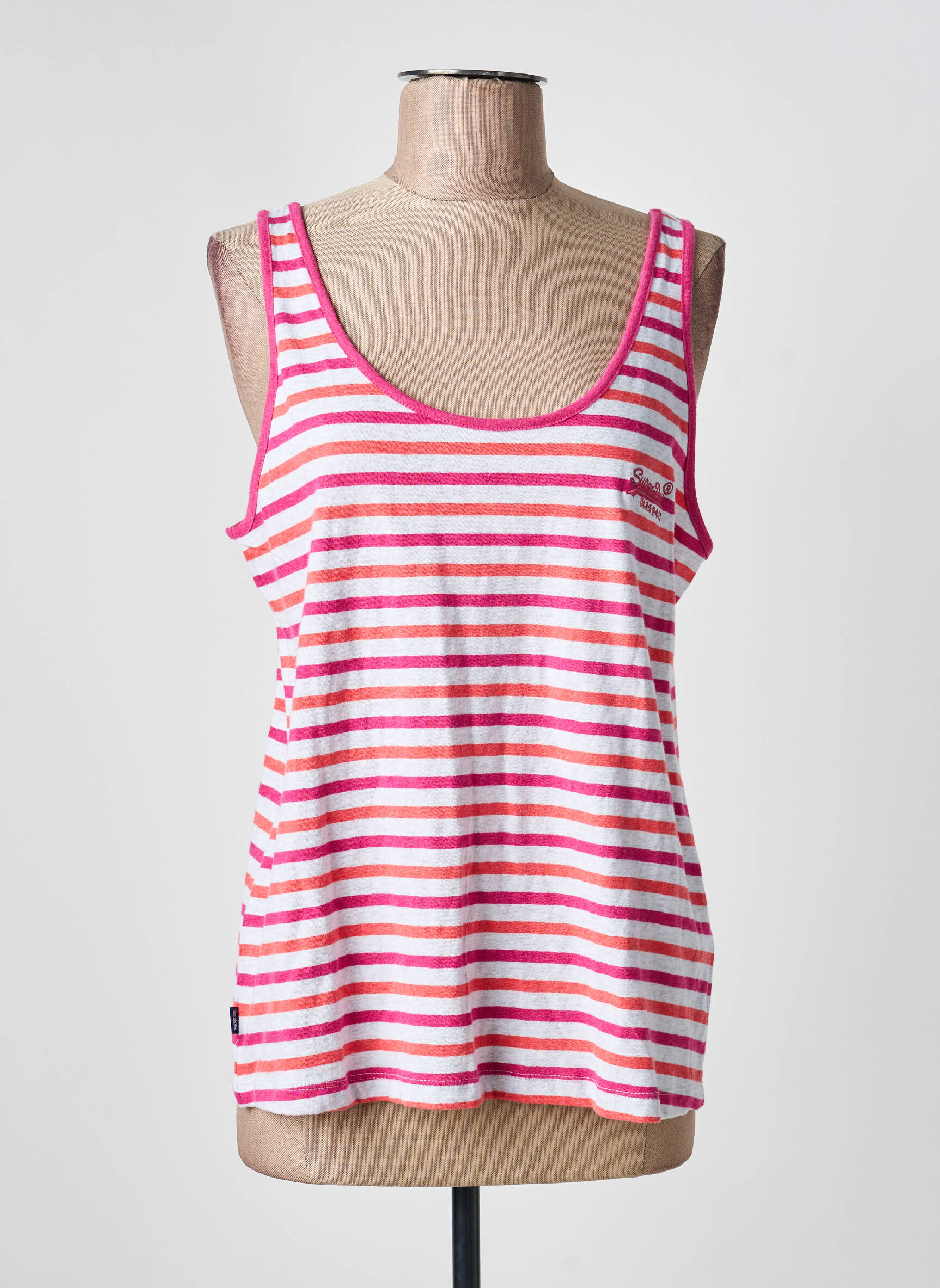 Offrez-vous un look tendance à petit prix avec ce débardeur pour femme signé SUPERDRY, un indispensable à saisir en promo. Sa coupe décontractée et son motif à rayures rose et blanc apportent une touche de fraîcheur à votre tenue, parfait pour les beaux jours ou vos moments détente. Sa finition soignée et son logo discret viennent compléter ce bon plan mode à ne pas manquer pour enrichir votre dressing sans vous ruiner.