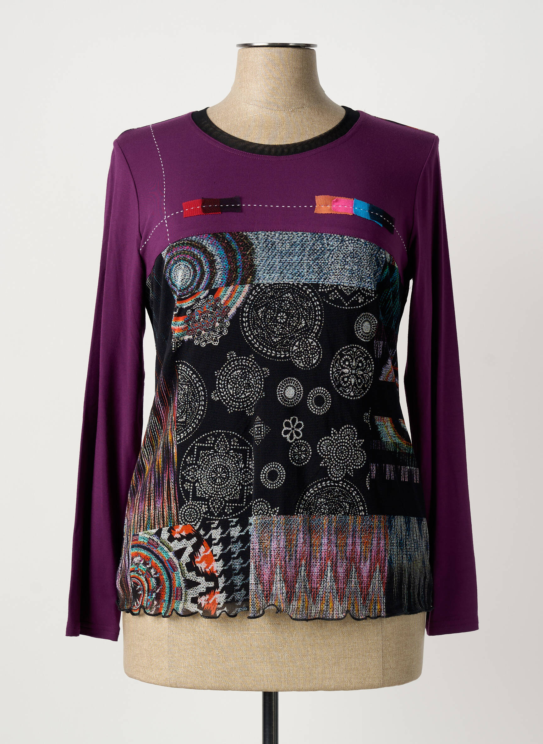 Offrez-vous ce top TELMAIL pour femme à prix mini, parfait pour celles qui cherchent à allier style et économies. Son design original mêle un fond violet intense à des motifs géométriques et graphiques très tendance sur le devant, agrémenté de touches multicolores pour une allure unique et dynamique. Ce haut à manches longues saura réveiller votre garde-robe tout en s’adaptant à toutes les occasions, et il est proposé ici à un tarif défiant toute concurrence.