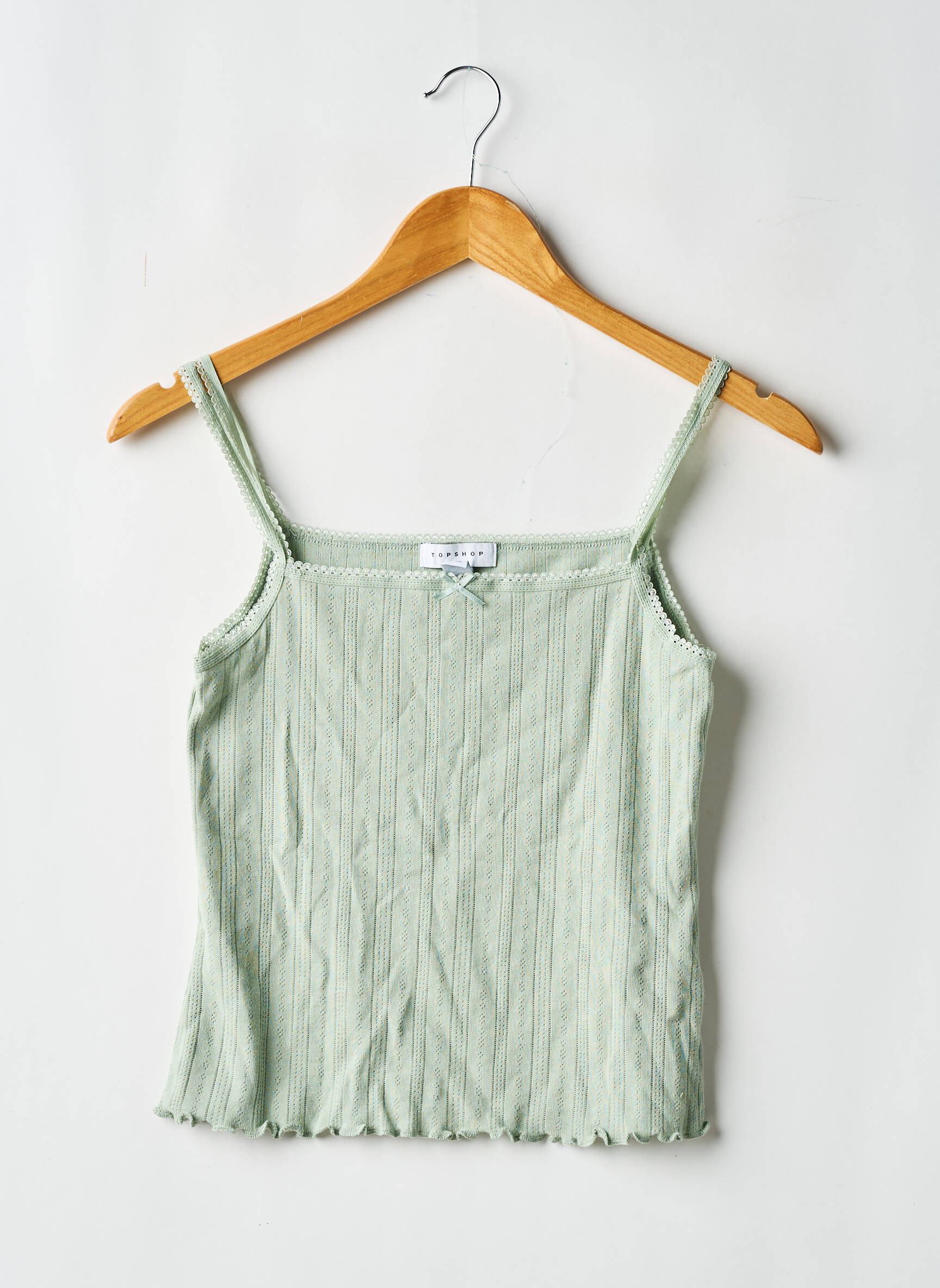 Craquez pour ce top TOPSHOP pour femme, une véritable affaire à petit prix pour moderniser votre dressing sans vous ruiner. Avec sa coupe à fines bretelles et sa texture légèrement gaufrée, ce débardeur vert pastel apporte une touche de fraîcheur et de féminité à toutes vos tenues estivales. À ce tarif avantageux, c’est un bon plan à ne pas laisser passer pour un look tendance en toute simplicité.