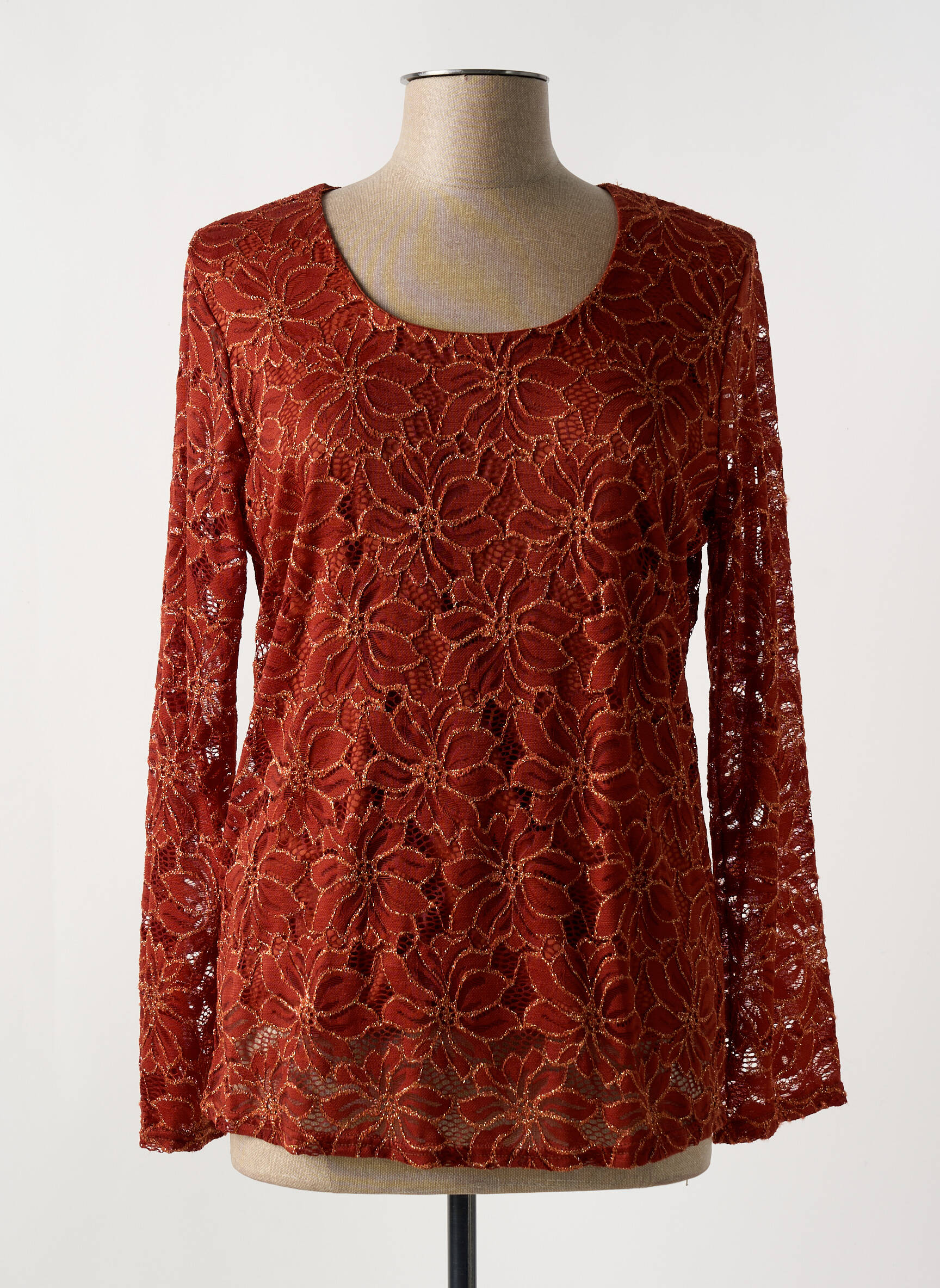 Top Un Temps Pour Elle Marron Manches Longues