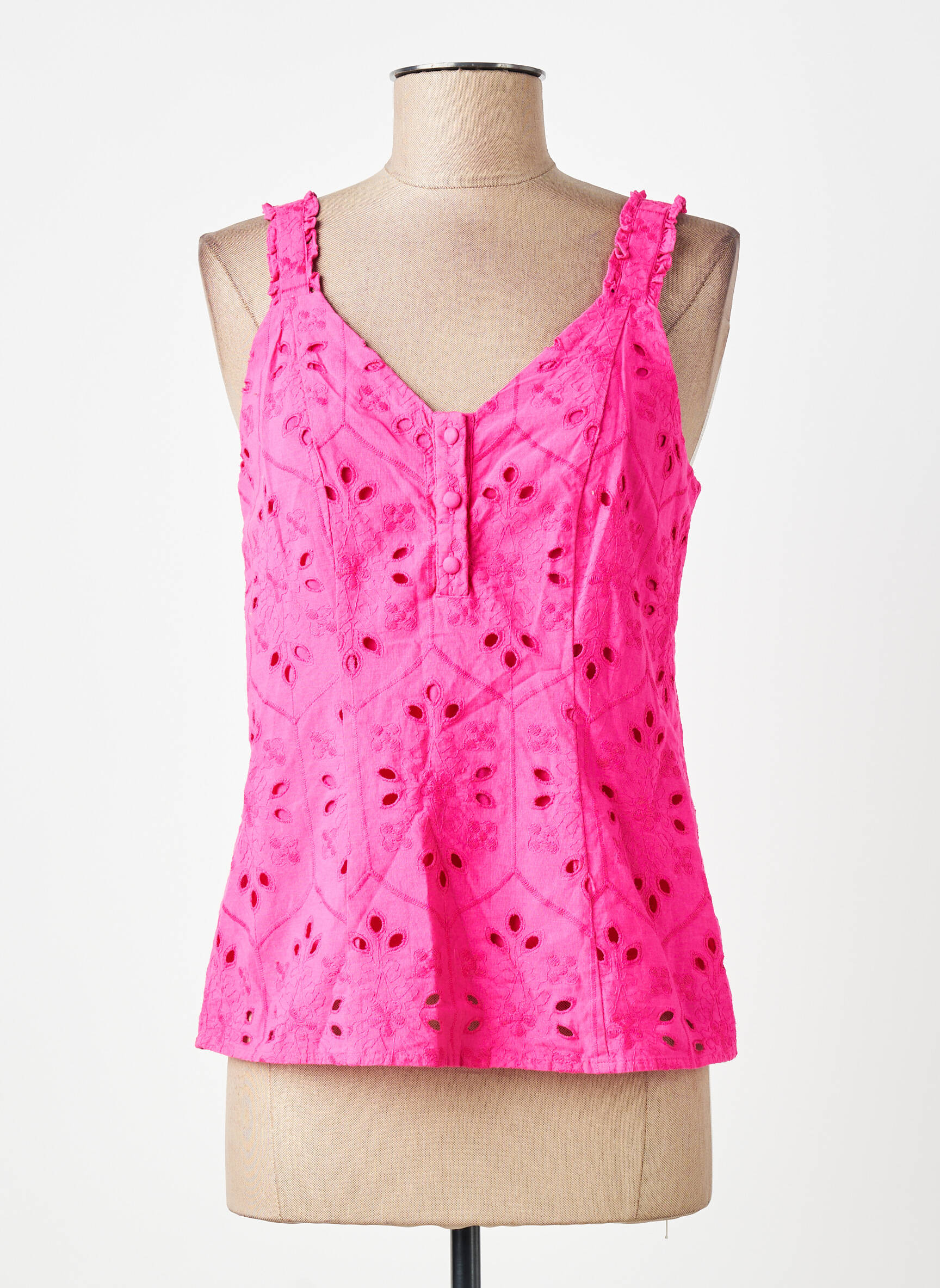 Craquez pour cette blouse VERO MODA pour femme à prix mini, parfaite pour apporter une touche de couleur éclatante à votre garde-robe sans vous ruiner. Son tissu rose vif au motif brodé et ses fines bretelles froncées offrent un look frais et tendance, idéal pour profiter des beaux jours tout en faisant de vraies économies sur une pièce de marque.