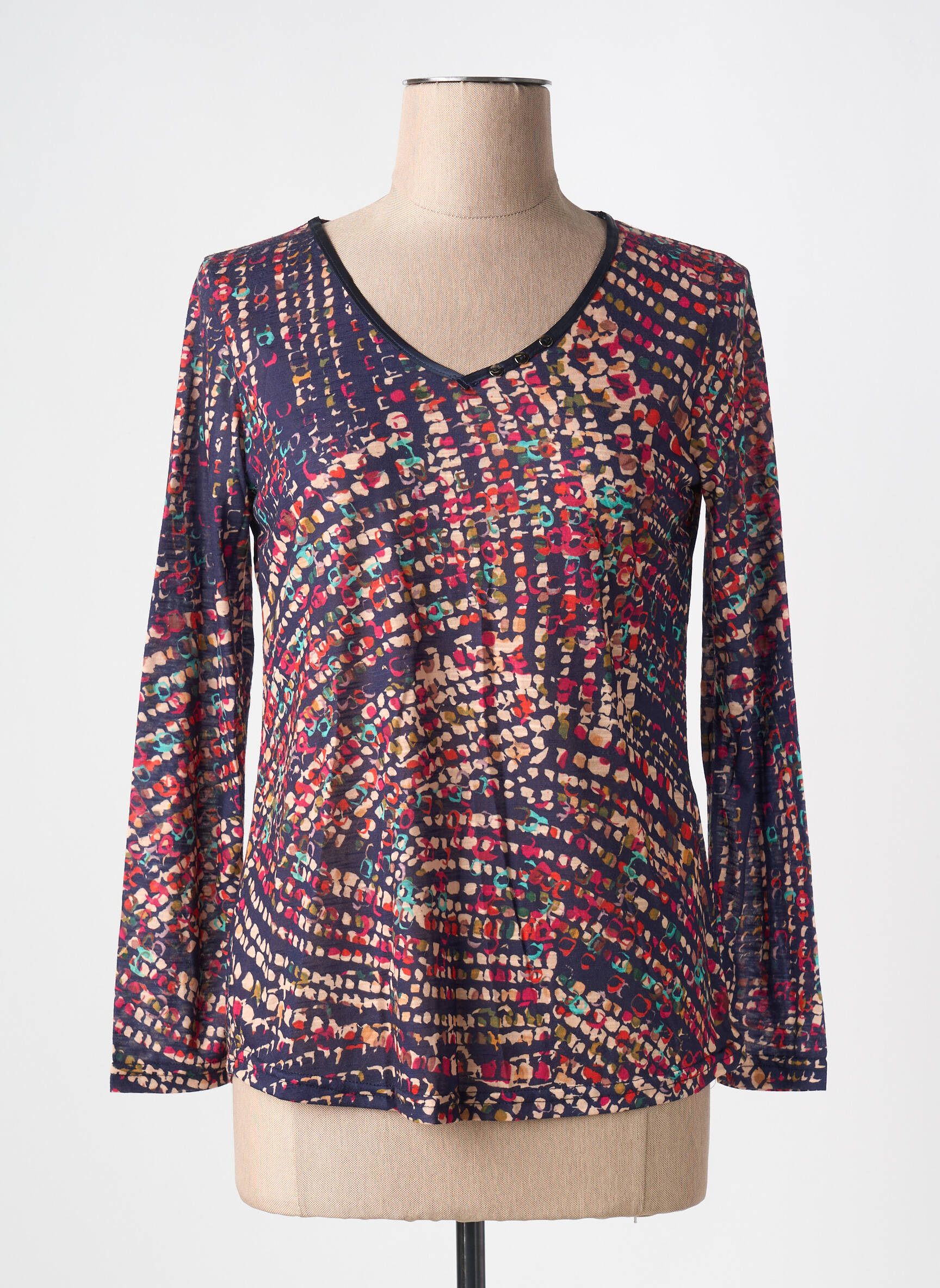 Profitez d’un vrai bon plan avec ce top pour femme de la marque VIE NOCTURNE qui séduit par son imprimé multicolore ultra moderne et son encolure en V flatteuse. Sa coupe confortable et ses manches longues en font un choix idéal pour donner du style à votre quotidien sans vous ruiner. C’est la pièce parfaite pour apporter une touche dynamique à votre garde-robe à petit prix.
