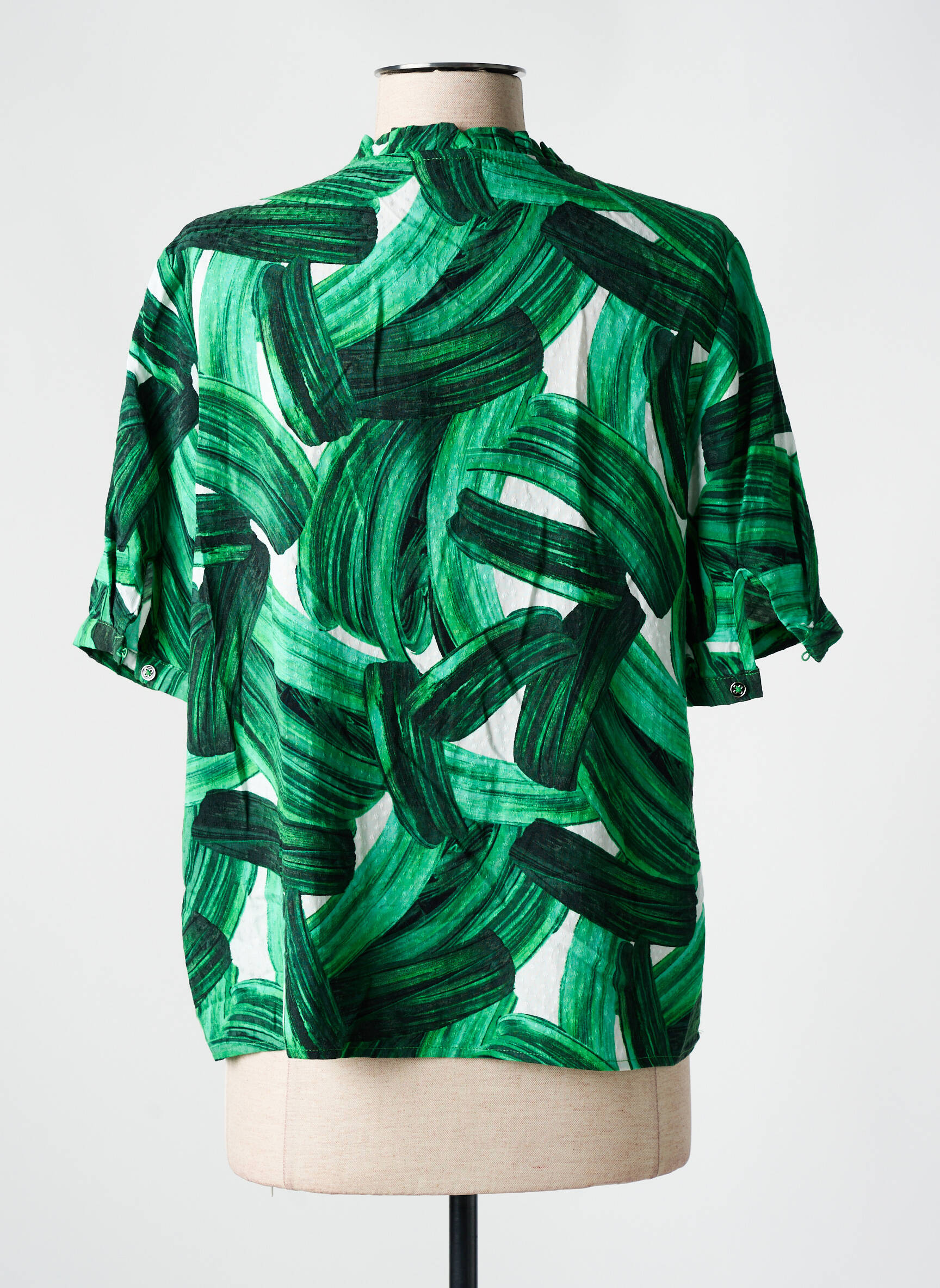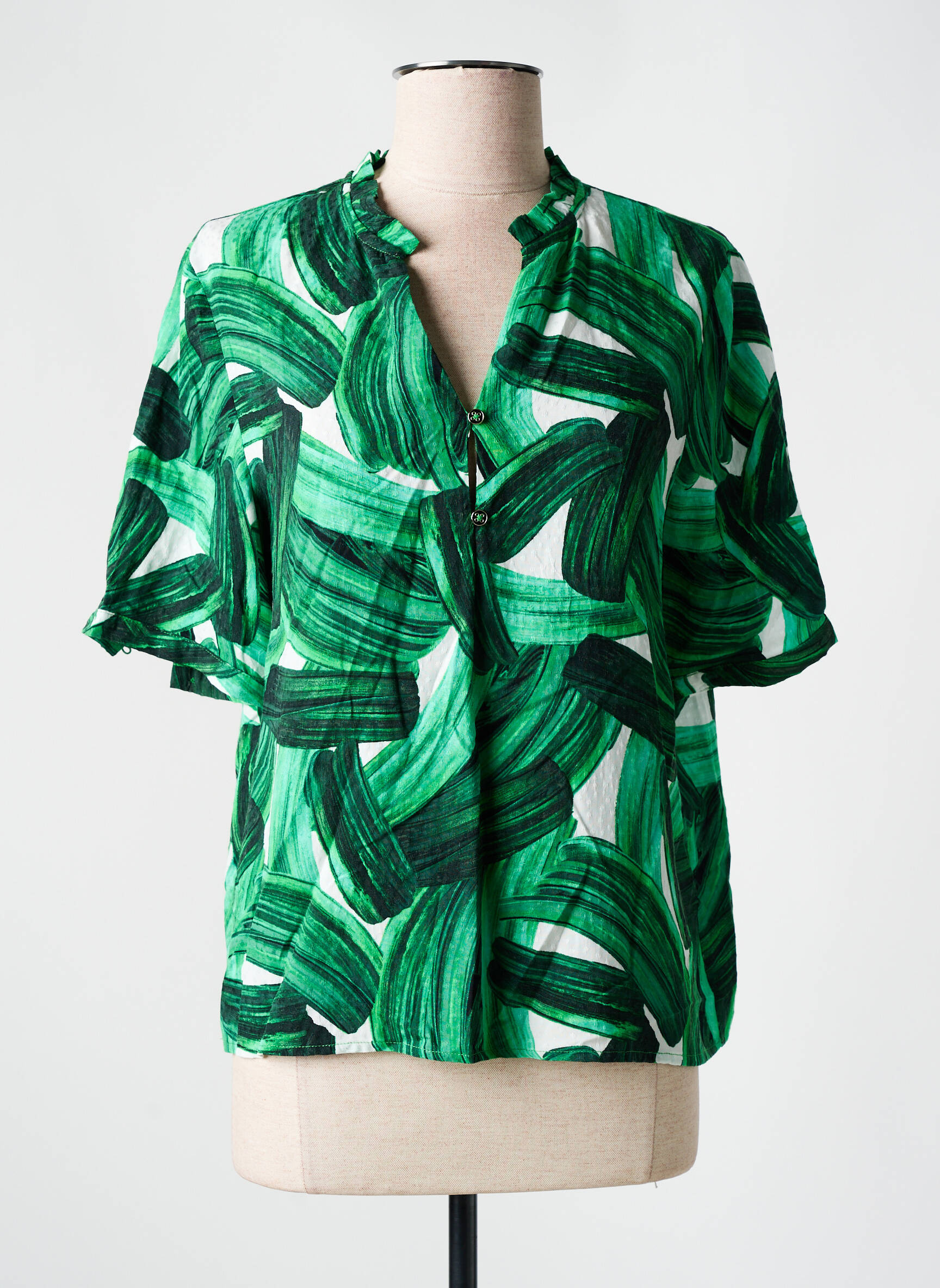 Craquez pour ce top VILA proposé à prix mini, une véritable opportunité à ne pas manquer pour donner du peps à votre garde-robe sans casser votre tirelire. Avec son imprimé original aux larges motifs verts façon coups de pinceau, cette blouse légère se distingue par son allure moderne et sa coupe fluide qui flatte toutes les silhouettes. Sa petite encolure fendue ajoute une note élégante tandis que les manches courtes apportent un effet décontracté parfait pour les beaux jours. Un vrai bon plan pour ajouter une pièce tendance à votre collection sans vous ruiner.