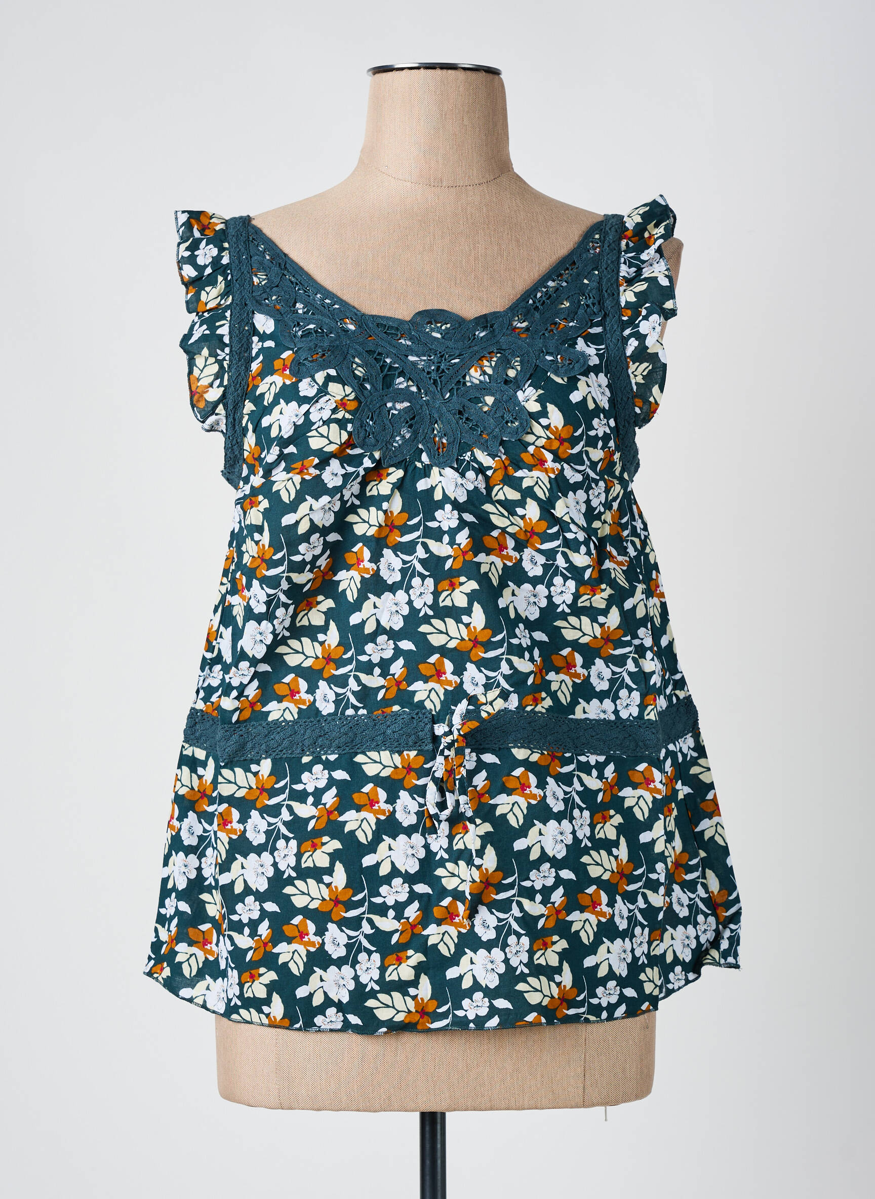 Craquez pour ce top VILA à prix mini, parfait pour apporter une touche fraîche et colorée à votre garde-robe sans vous ruiner. Sa coupe féminine est mise en valeur par un joli imprimé fleuri sur fond vert canard, agrémenté d'une encolure travaillée et de petits volants délicats sur les épaules. Doux, léger et respirant, il deviendra vite votre allié des beaux jours, que vous recherchiez confort ou style à petit prix.
