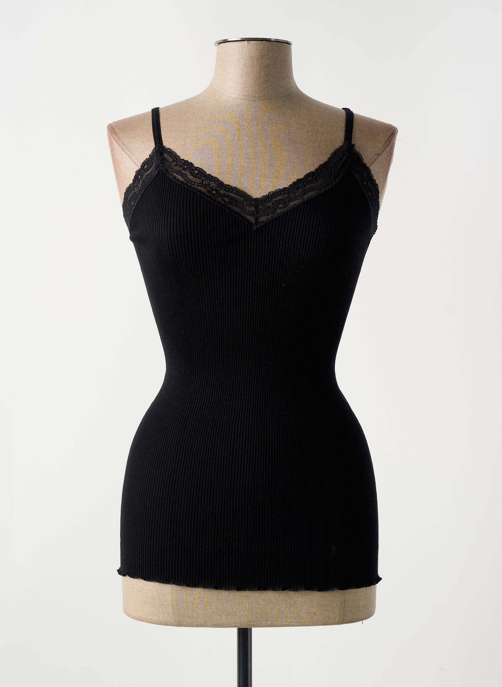 Craquez pour ce top de la marque VITTORIA B, parfait pour allier style et petits prix grâce à notre offre déstockage. Élégant et intemporel, il séduit par sa coupe près du corps et ses fines bretelles, tandis que le décolleté souligné d'une délicate dentelle apporte une touche féminine à toutes vos tenues. Grâce à son coloris noir, il s’accorde facilement avec toute votre garde-robe, que ce soit sous une veste ou porté seul pour un look simple et raffiné sans compromis sur votre budget.