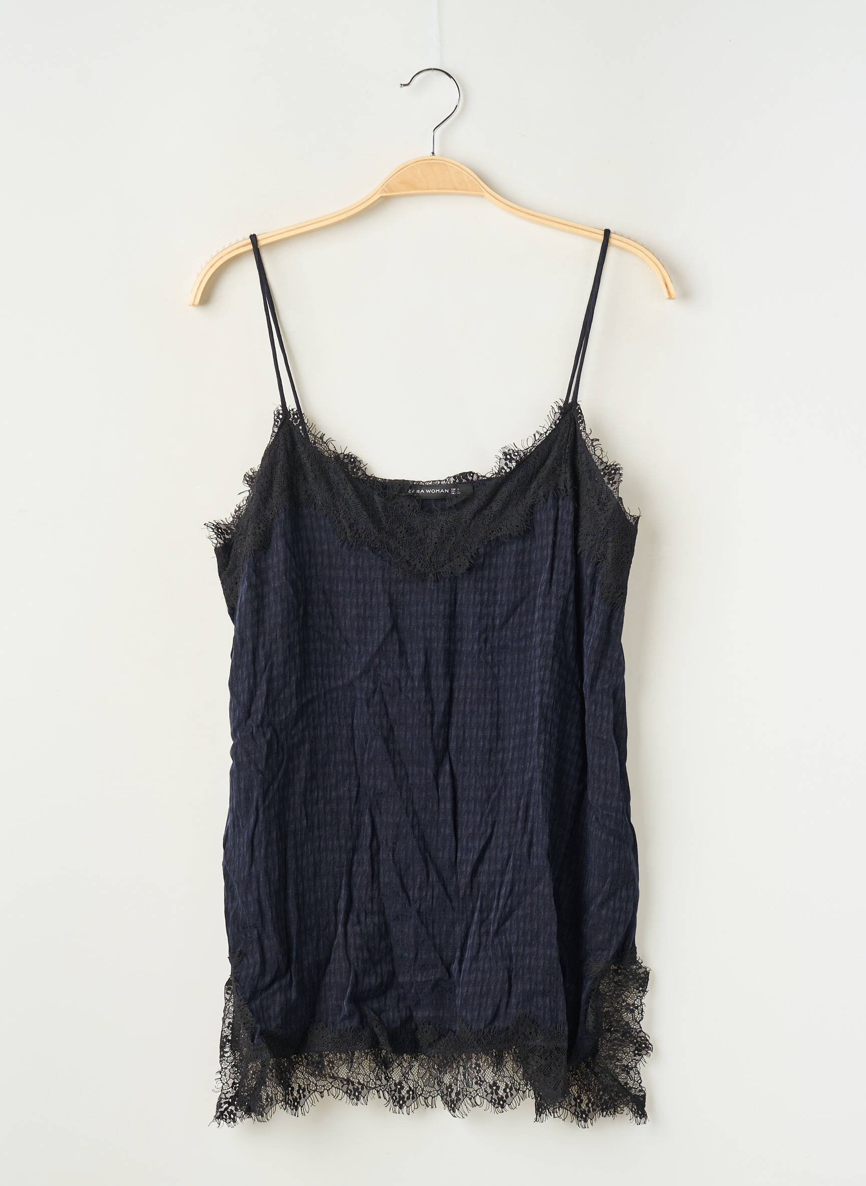 Voici une occasion à ne pas manquer pour ajouter une touche élégante à votre garde-robe sans vous ruiner avec ce top à fines bretelles signé ZARA. Sa coupe délicate est sublimée par un tissu fluide noir, tandis que la dentelle noire qui orne le décolleté et le bas apporte une note de raffinement très tendance. Profitez de ce bon plan pour adopter un look chic à prix mini.