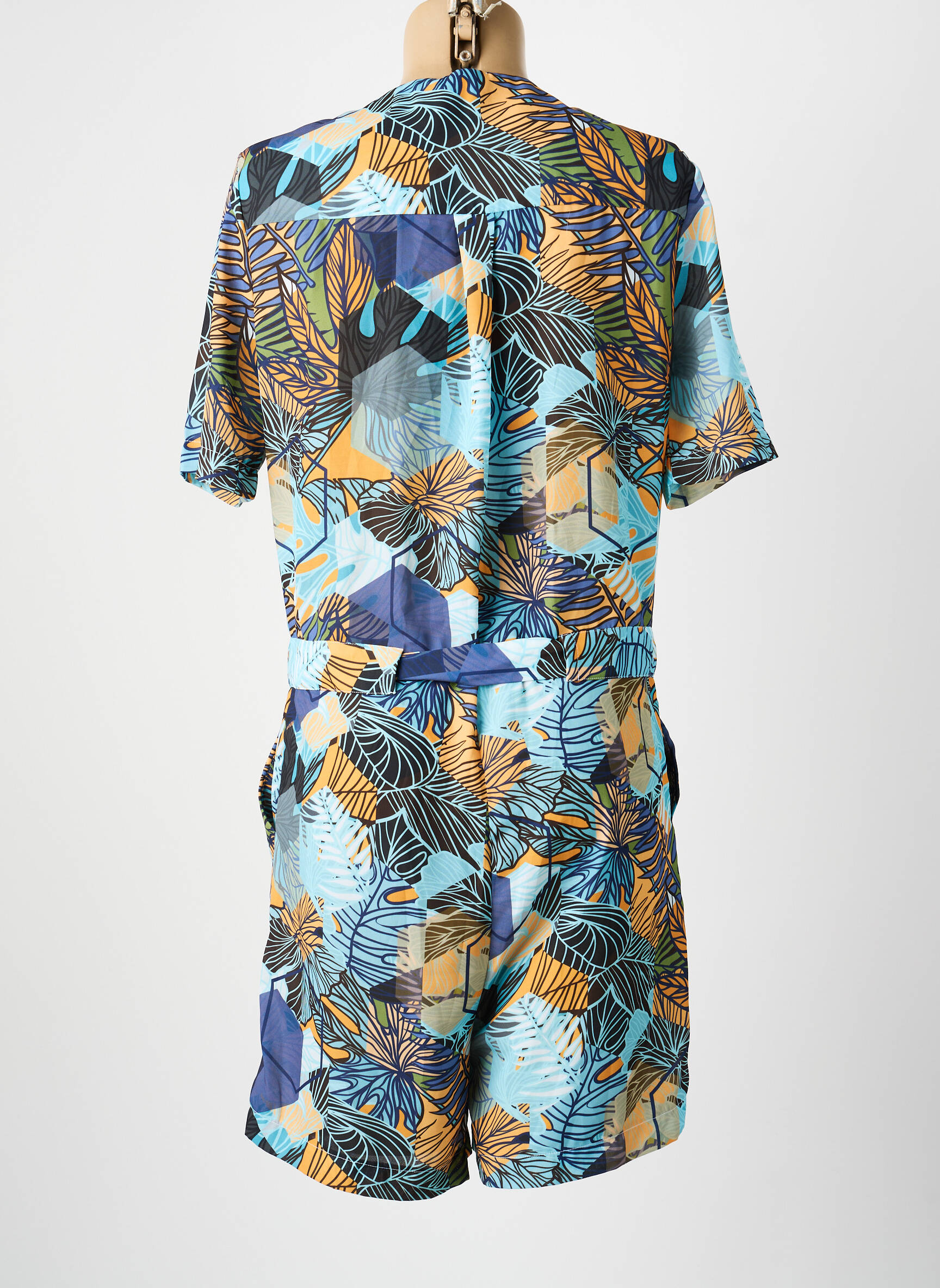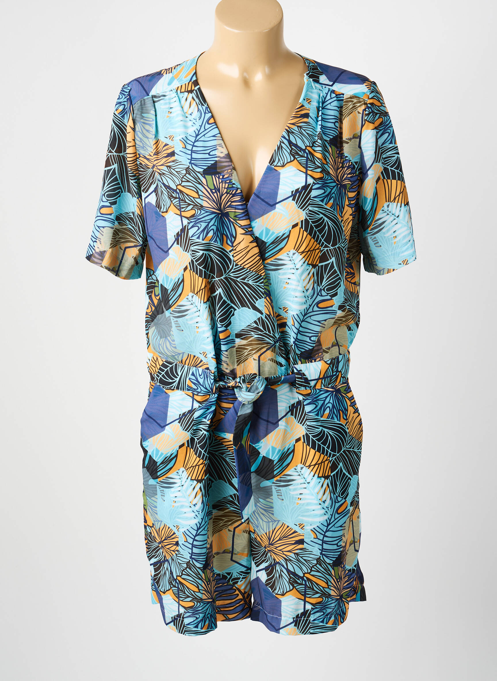 Profitez d'un style tendance à prix mini avec ce combishort signé CHRISMAS'S, parfait pour vous faire plaisir sans vous ruiner. Ce modèle arbore un imprimé tropical aux teintes vives de bleu, jaune et orange, qui apporte une touche d'exotisme à votre garde-robe estivale. La coupe est décontractée avec une taille marquée par un lien ajustable, un joli décolleté en V et des manches courtes confortables, ce qui en fait un choix idéal pour vos journées ensoleillées ou vos sorties décontractées. Saisissez cette opportunité d'économiser tout en ajoutant une pièce moderne et colorée à votre dressing !