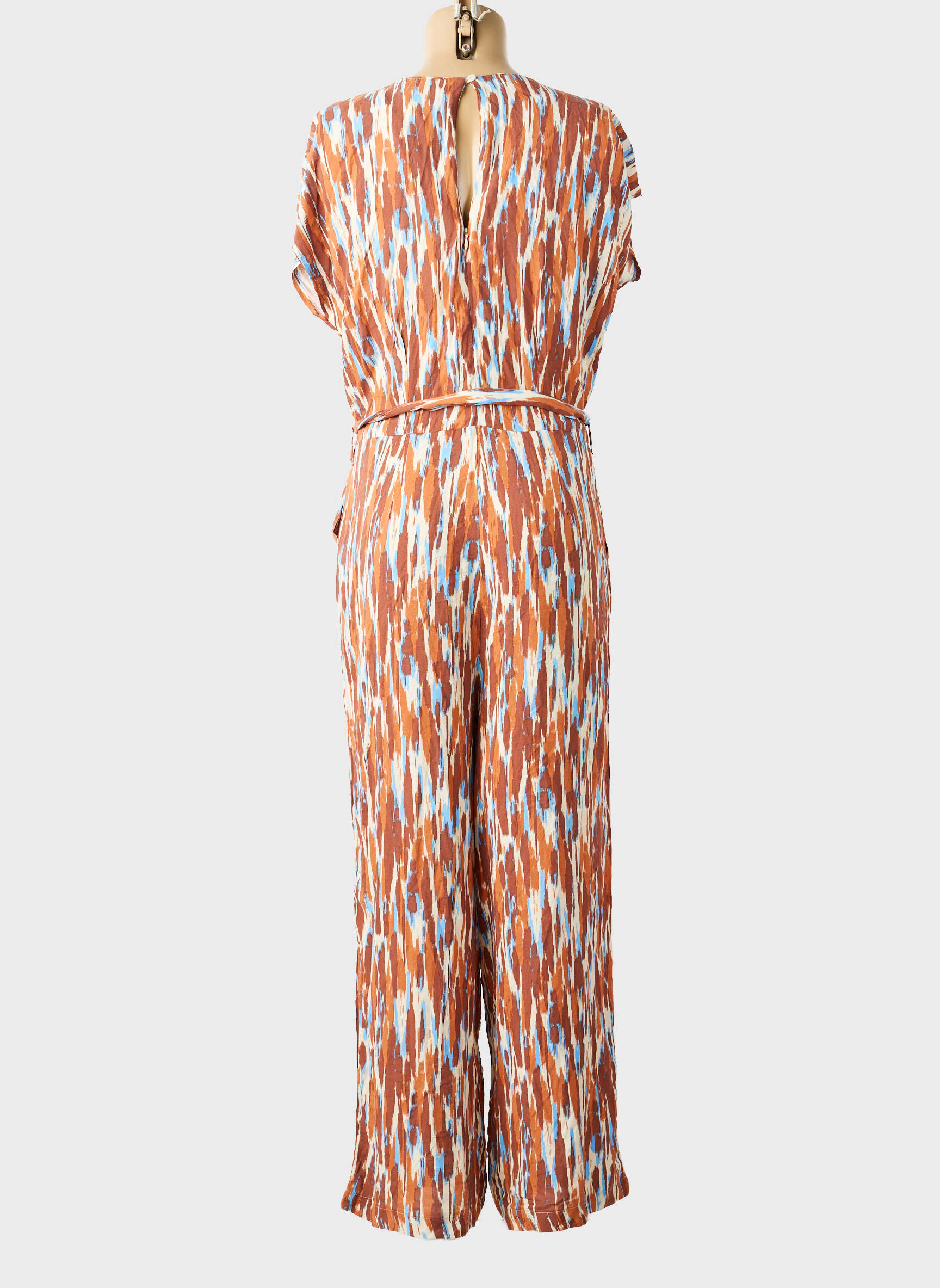 Offrez-vous un look tendance à petit prix avec ce combi-pantalon de la marque B.YOUNG, qui séduit par son imprimé graphique dans des tons chauds mêlant orange, blanc et touches de bleu, parfait pour dynamiser votre garde-robe sans vous ruiner. Sa coupe fluide assure un confort au quotidien, tandis que la ceinture à nouer dessine joliment la silhouette pour un style à la fois décontracté et féminin, idéal pour profiter des meilleures affaires mode de la saison.