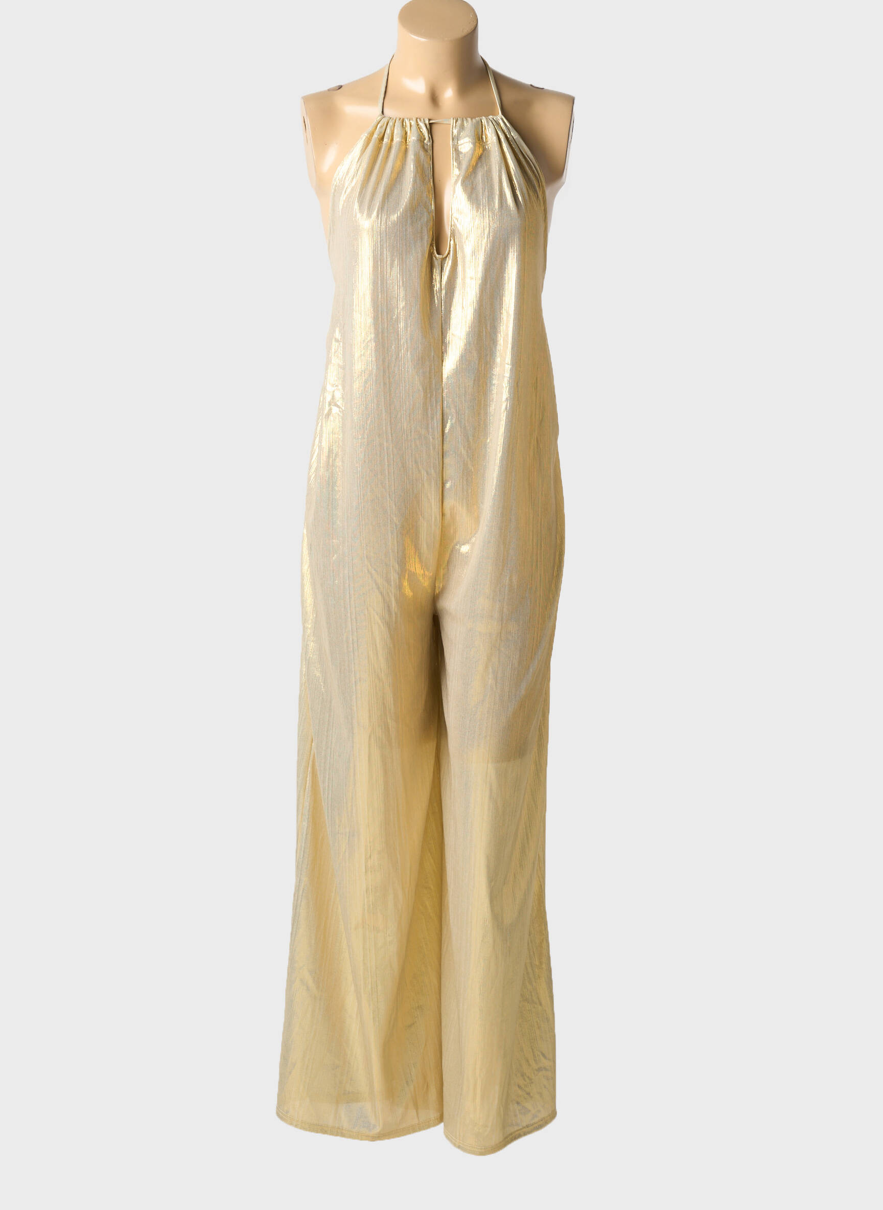 Craquez pour ce combi-pantalon pour femme de la marque CARIOCA, une pièce à petit prix qui ne passe pas inaperçue avec son tissu doré à l’aspect métallisé et son tombé fluide. Le haut à fine bretelle qui se noue autour du cou met en valeur les épaules tandis que la coupe ample assure confort et allure moderne, parfait pour briller lors d'une soirée sans se ruiner.