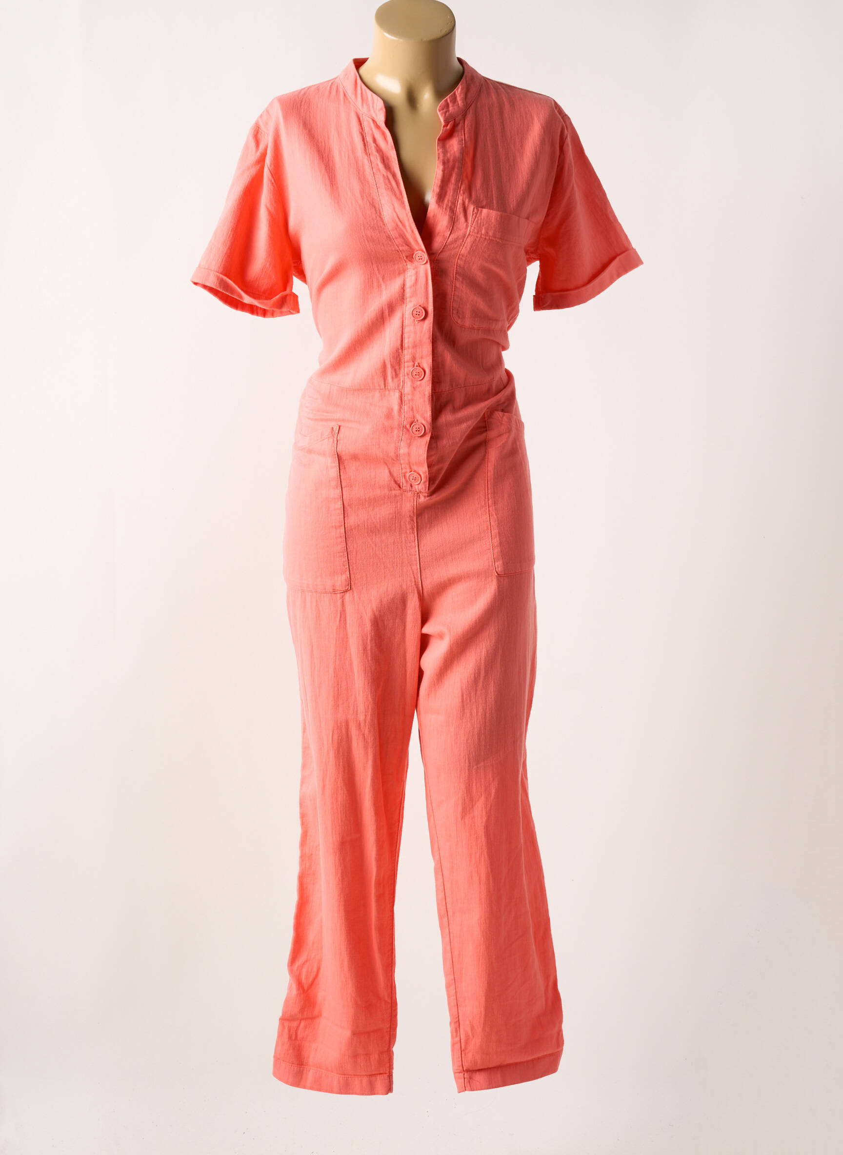 Profitez d’un look tendance à prix mini avec cette combi-pantalon FIVE pour femme, idéale pour celles qui veulent allier style et économies. Sa coupe légèrement loose et sa teinte corail égayent la silhouette tout en restant facile à porter au quotidien. On aime sa matière légère, ses manches courtes, son col tunisien et sa boutonnière sur le devant qui modernisent la pièce, sans oublier les grandes poches plaquées qui ajoutent une touche pratique. C’est la pièce parfaite à shopper sans hésiter pour se faire plaisir sans se ruiner?!
