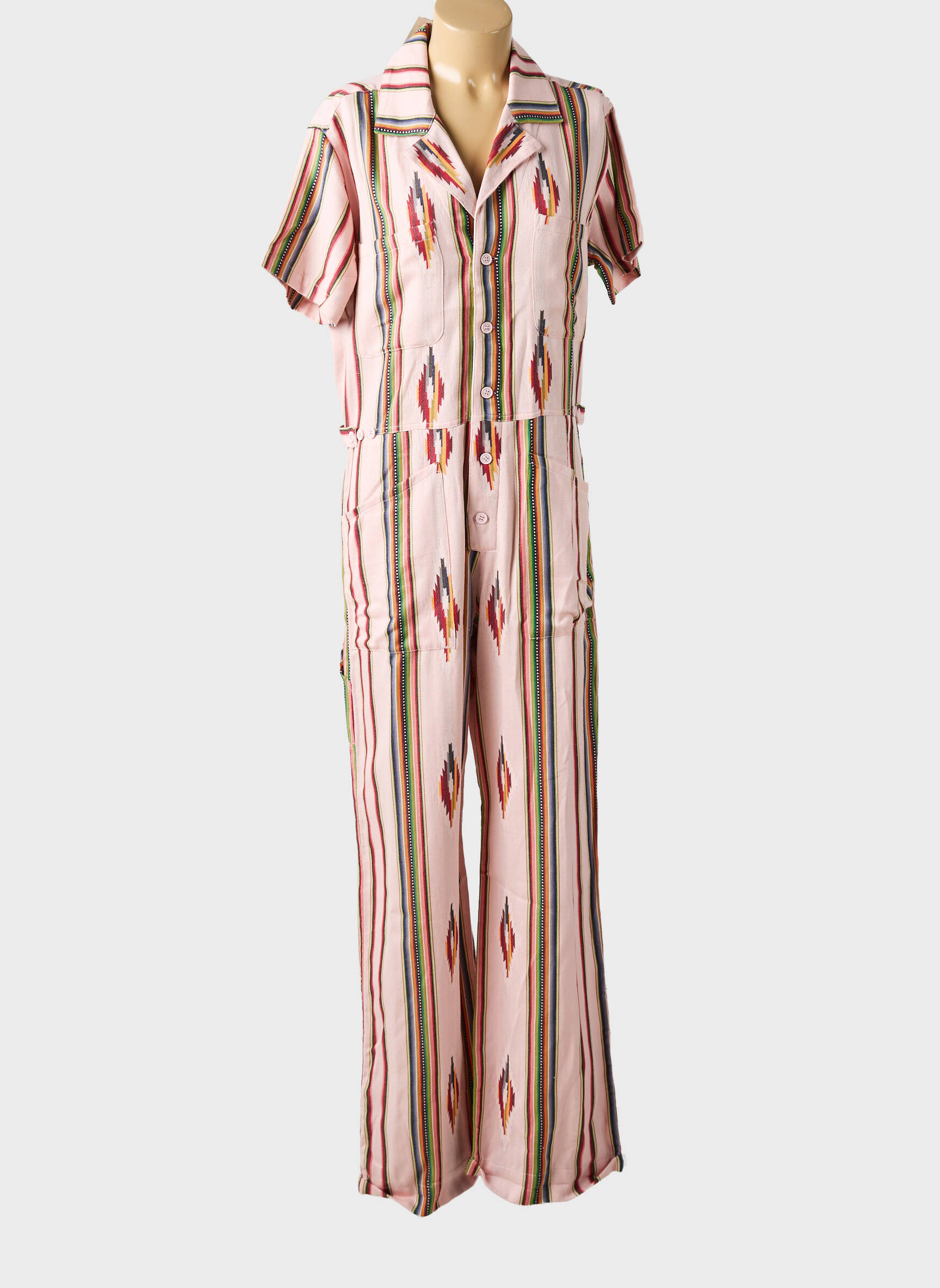 Profitez d’un vrai bon plan avec cette combi-pantalon de la marque FIVE pour femme, à prix déstockage. Ce modèle séduit par son motif original à rayures verticales multicolores relevé de touches graphiques, tandis que la coupe fluide et les manches courtes apportent une allure décontractée et stylée. Voici une pièce idéale pour dynamiser votre dressing avec caractère sans vous ruiner, tout en misant sur le confort au quotidien.
