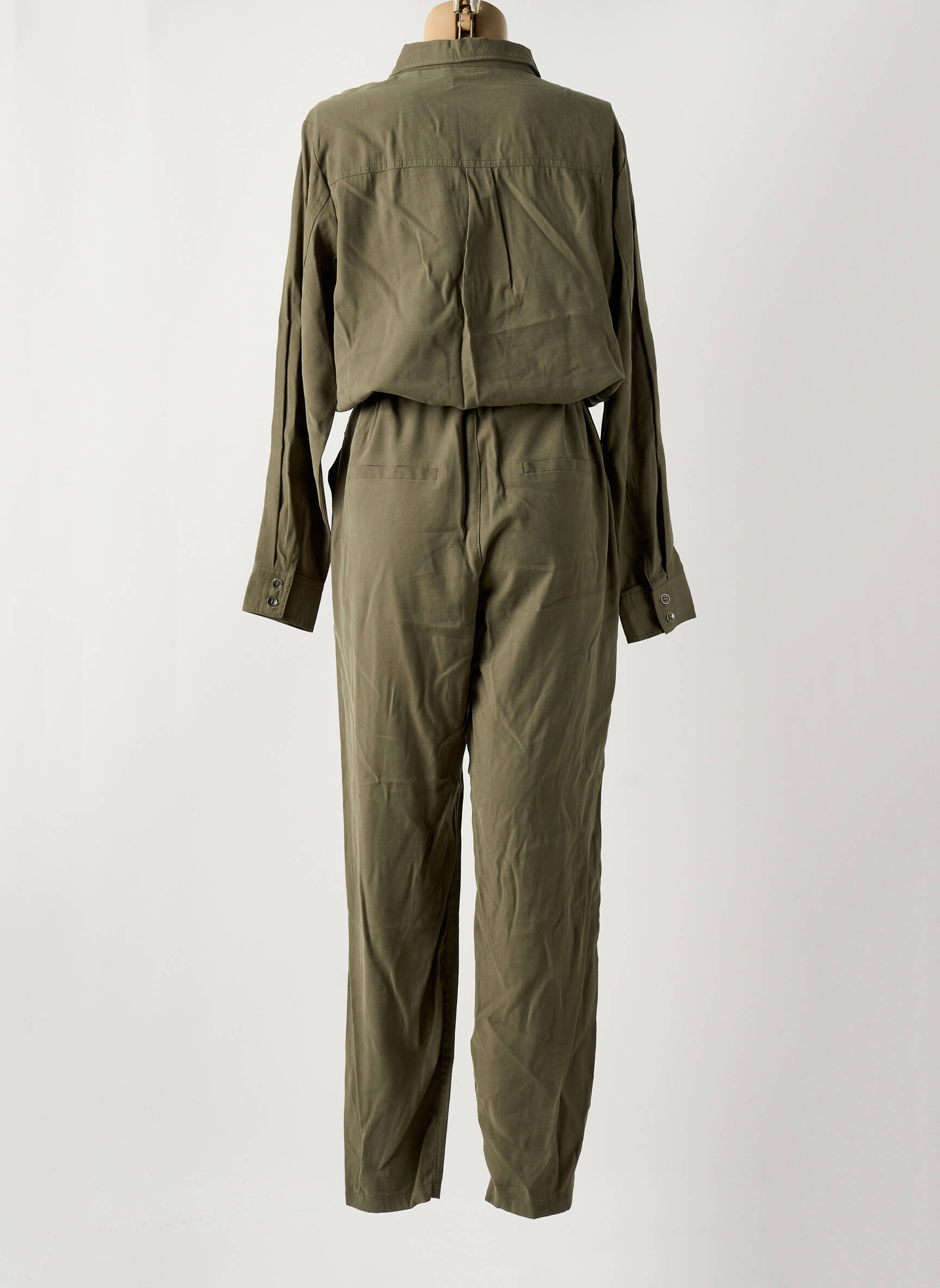 Craquez pour ce combi-pantalon FRANSA au look tendance et décontracté, une vraie bonne affaire pour renouveler votre garde-robe sans vous ruiner. Sa coupe légèrement ample et sa ceinture à nouer à la taille mettent en valeur votre silhouette tout en vous offrant un confort optimal, tandis que sa teinte kaki et son col chemise apportent une touche moderne et facile à assortir. Profitez d'un style mode à prix doux avec cette pièce idéale pour vos looks du quotidien.