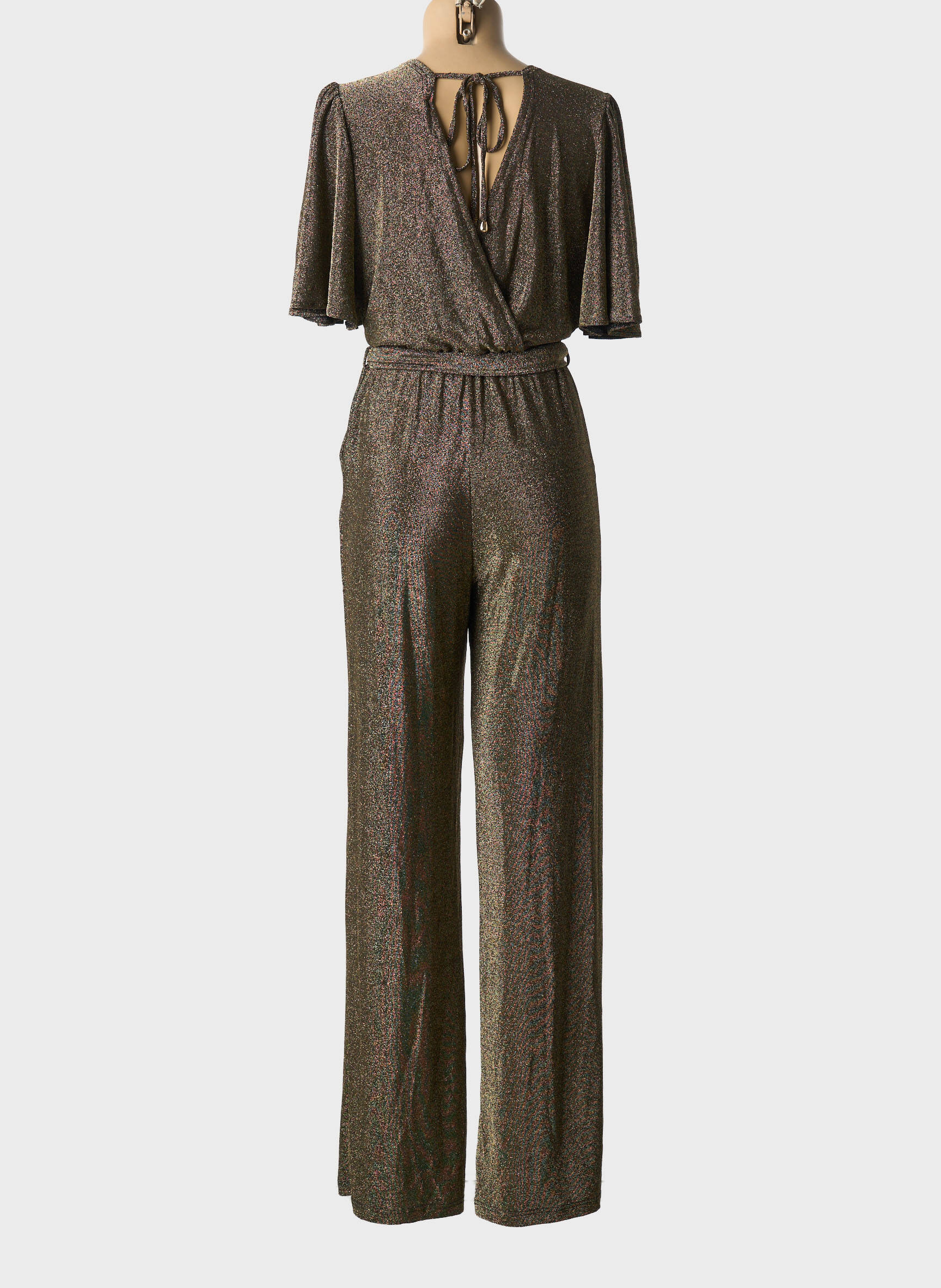 Craquez pour cette combi-pantalon LA PETITE ETOILE à prix mini, parfaite pour conjuguer élégance et économie lors de vos soirées ou événements. Son tissu souple à l’aspect légèrement satiné, son décolleté cache-cœur et ses manches papillon offrent une silhouette féminine et moderne, tandis que la ceinture à nouer souligne la taille avec délicatesse. Voilà une pièce chic et polyvalente à petit prix pour renouveler votre dressing sans vous ruiner.