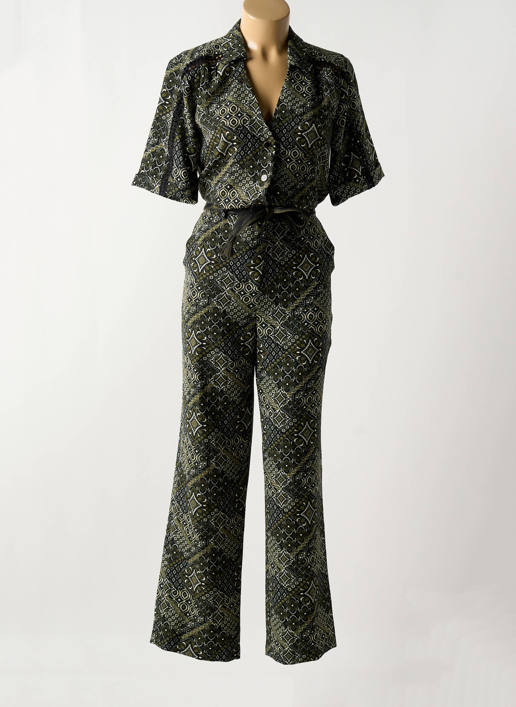 Craquez pour cette combi-pantalon femme de la marque MAISON CAPTAIN, une véritable pépite mode à prix mini qui vous permet d’allier élégance et économies. Son motif graphique all-over apporte une touche d’originalité, tandis que la coupe fluide et légèrement évasée assure un confort maximal tout au long de la journée. Avec son col classique et ses manches courtes, cette combinaison est idéale pour un look sophistiqué sans effort, parfaite pour toutes vos occasions du quotidien tout en profitant d’un bon plan mode irrésistible.