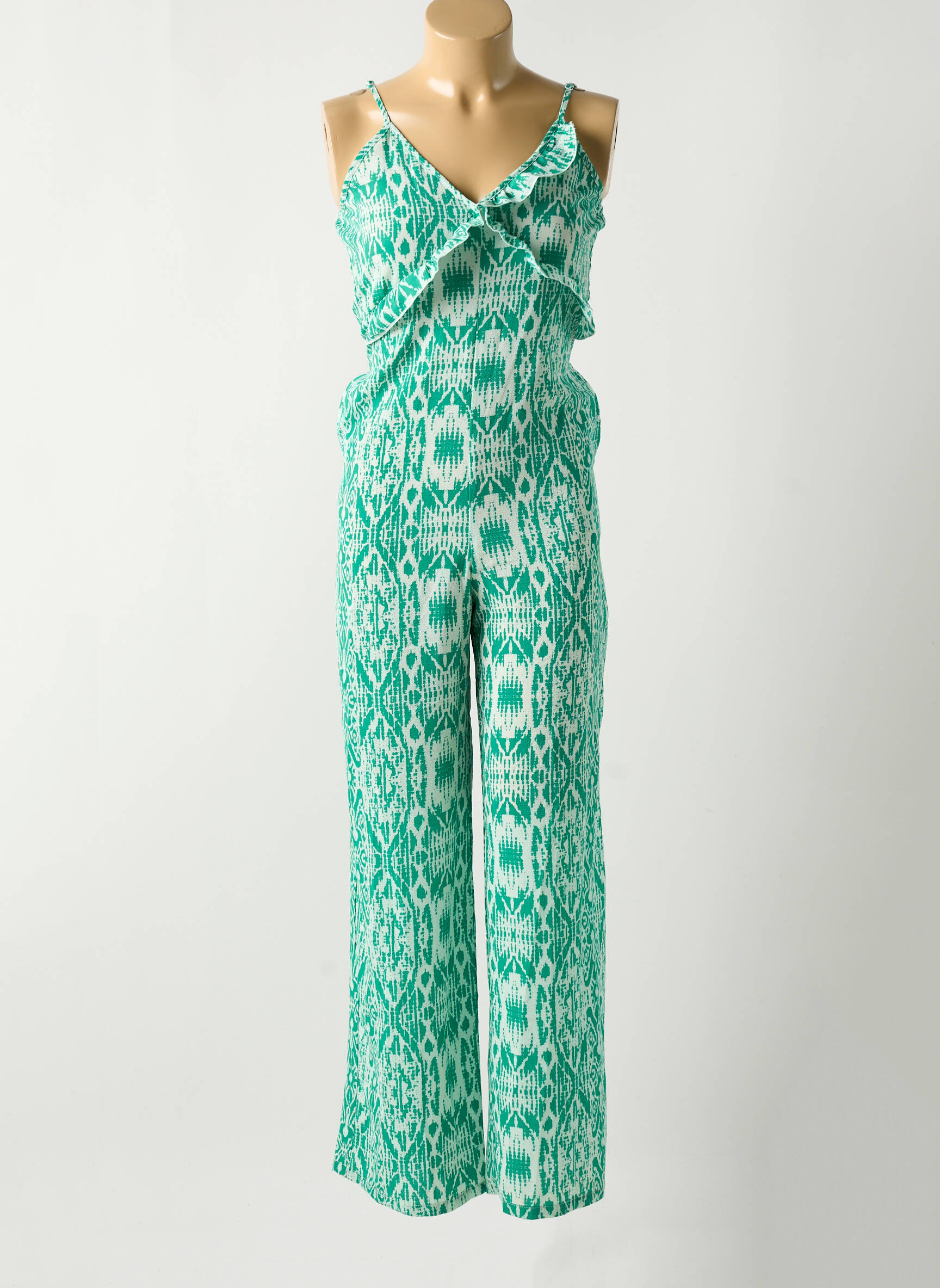 Craquez pour ce combi-pantalon femme de la marque ONLY, une pièce tendance à petit prix idéale pour adopter un look chic sans se ruiner. Sa coupe fluide et son imprimé graphique aux teintes vertes apportent une touche de fraîcheur et d’originalité à votre garde-robe, tandis que le détail volanté et les fines bretelles soulignent délicatement le haut du buste pour un effet féminin garanti. Profitez de l’occasion pour vous offrir un vêtement aussi confortable qu’élégant, parfait pour illuminer vos journées d’été ou vos soirées entre amis à moindre coût.