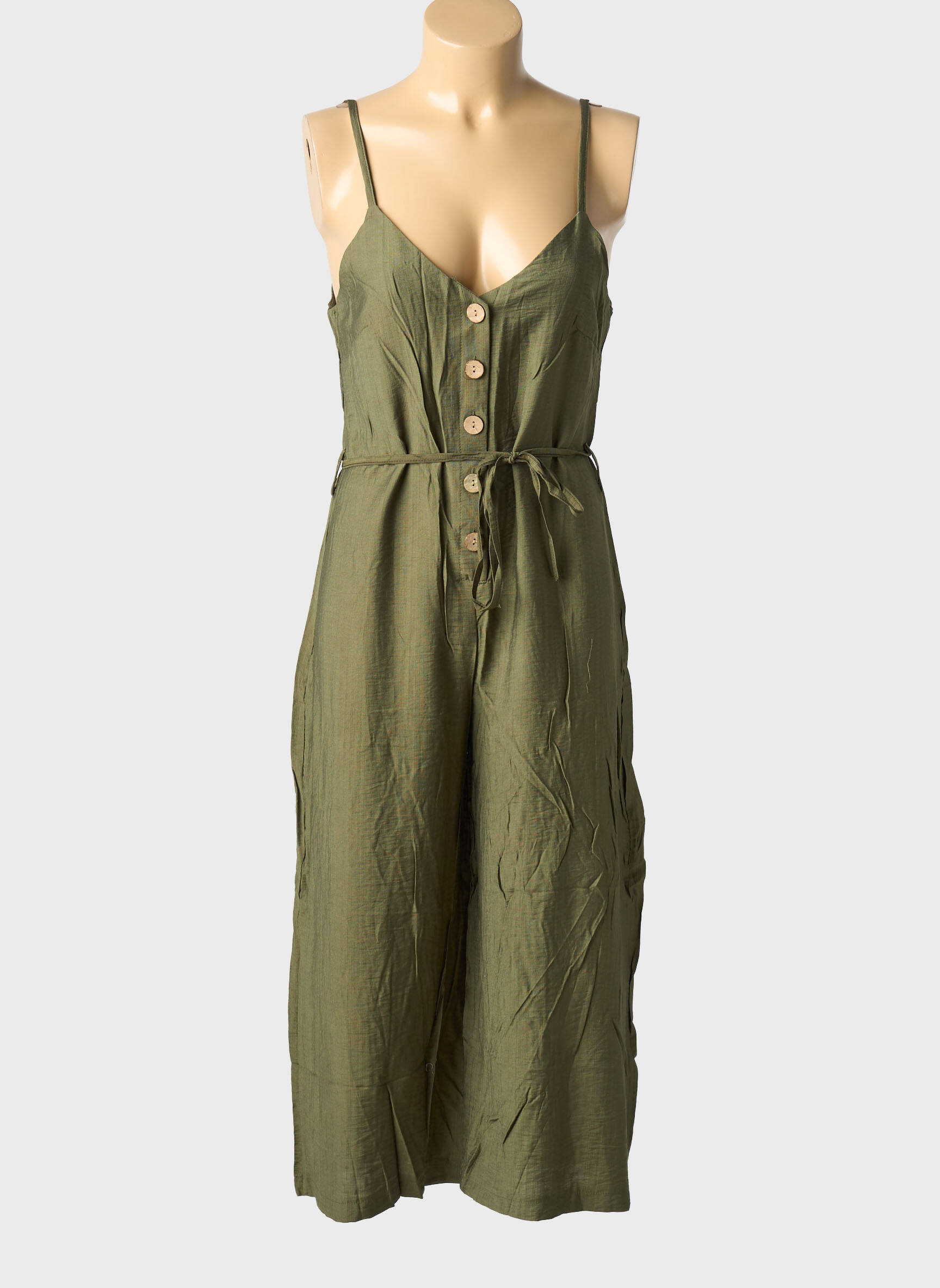 Craquez pour cette combi-pantalon ROSA FASHION pour femme, un choix idéal pour allier style moderne et petit prix. Son joli coloris kaki, sa coupe fluide à bretelles fines, ses boutons décoratifs sur le devant et sa ceinture à nouer à la taille offrent une silhouette élégante et décontractée, parfaite pour les beaux jours. Ce modèle tendance à prix réduit vous garantit d’adopter un look chic sans faire de folies côté budget.