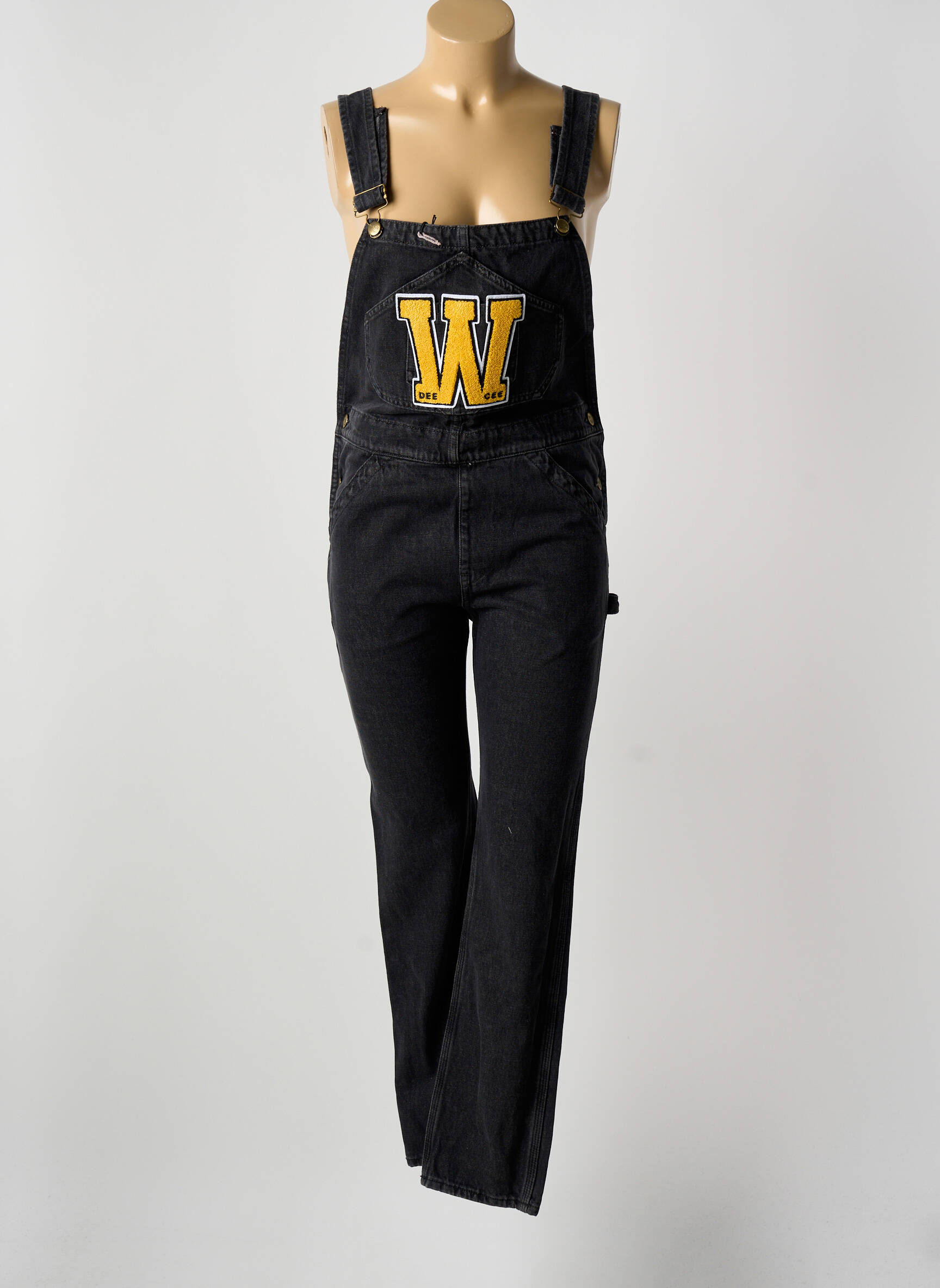Craquez pour cette salopette DEE CEE pour femme, une pièce tendance à prix mini qui apporte une touche casual et originale à votre dressing, avec son coloris noir facile à assortir et son large écusson lettrage contrasté sur le devant qui donne beaucoup de style ; une véritable opportunité pour afficher un look urbain sans se ruiner.