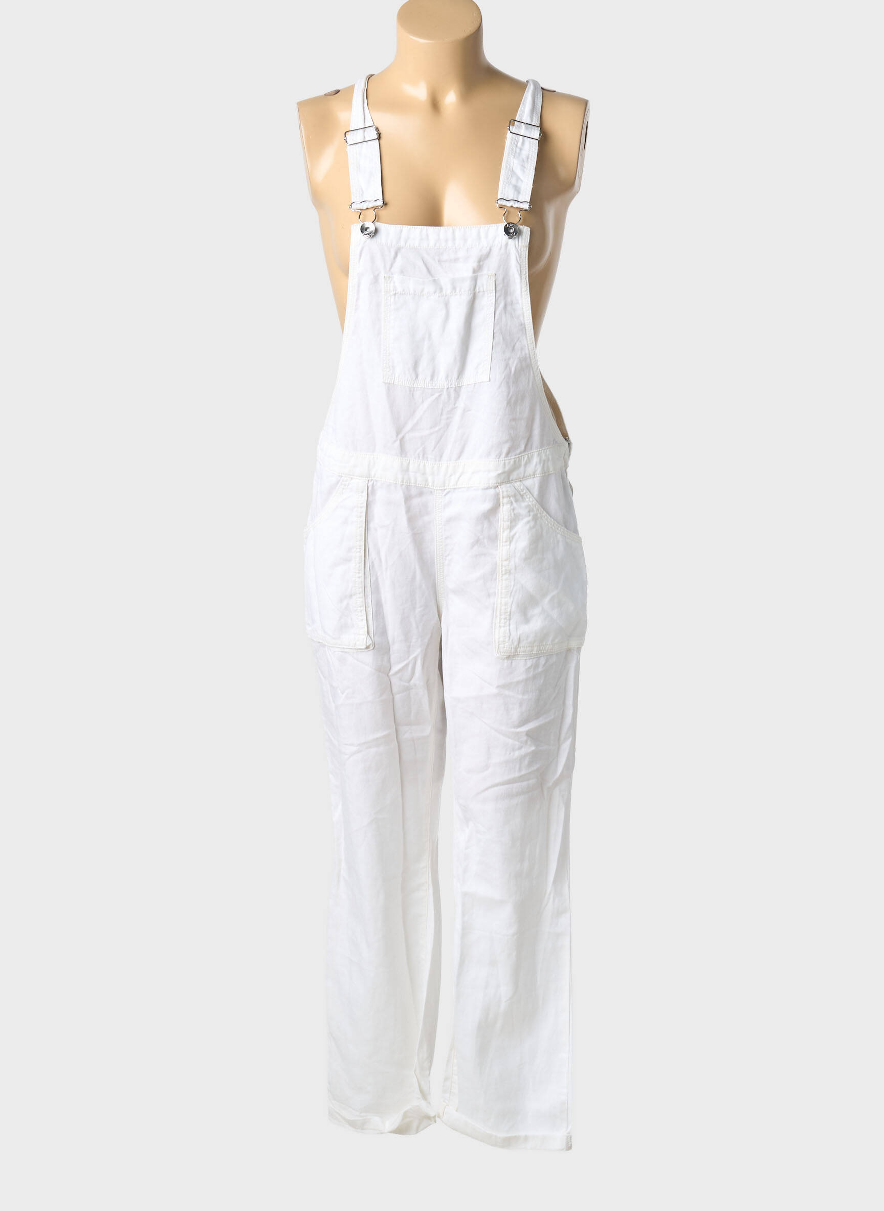 Pour un style frais et lumineux, glissez un t-shirt ajusté ou une blouse légère sous cette salopette blanche et complétez votre look avec une paire de baskets ou des sandales plates pour une allure décontractée. Vous pouvez aussi accessoiriser avec une ceinture fine, une pochette colorée ou un chapeau pour apporter une touche personnelle et tendance à votre tenue. Pour les journées un peu plus fraîches, une veste en jean ou un gilet oversize s’associent parfaitement à cette pièce et permettent de jouer sur les superpositions tout en gardant une silhouette moderne.