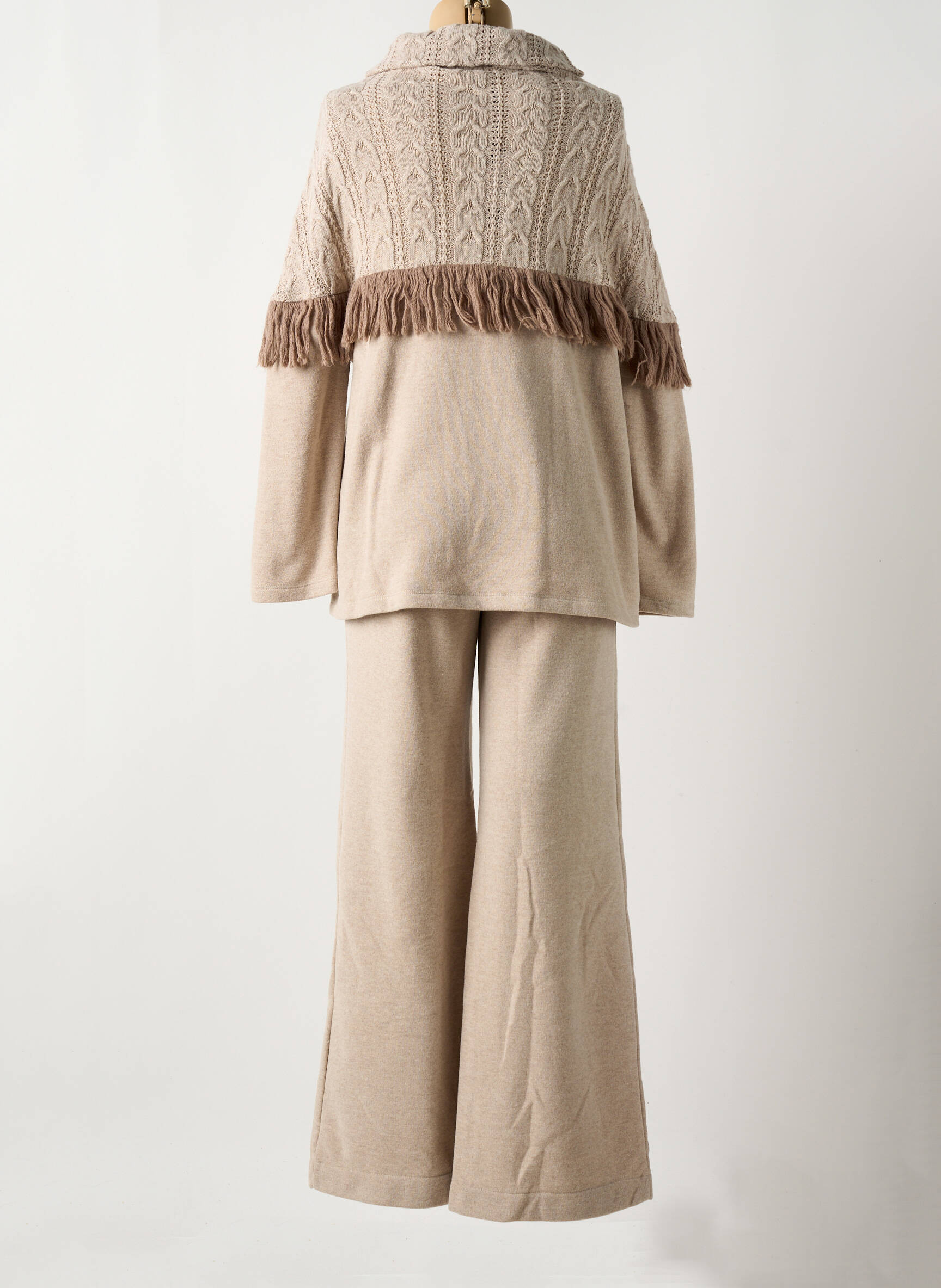 Craquez pour cet ensemble pantalon CHIARA FIORINI pour femme, une véritable opportunité à prix mini pour adopter un look tendance et confortable sans se ruiner. Le haut à col haut se distingue par un jeu raffiné de mailles torsadées, rehaussé par une frange délicate sur la poitrine, insufflant une note bohème et chaleureuse à la silhouette. Le pantalon ample complète l’ensemble avec une allure fluide et décontractée, parfait pour rester stylée tout en profitant d’un confort absolu au quotidien. Profitez de ce bon plan pour réinventer votre dressing avec élégance, à petit prix.