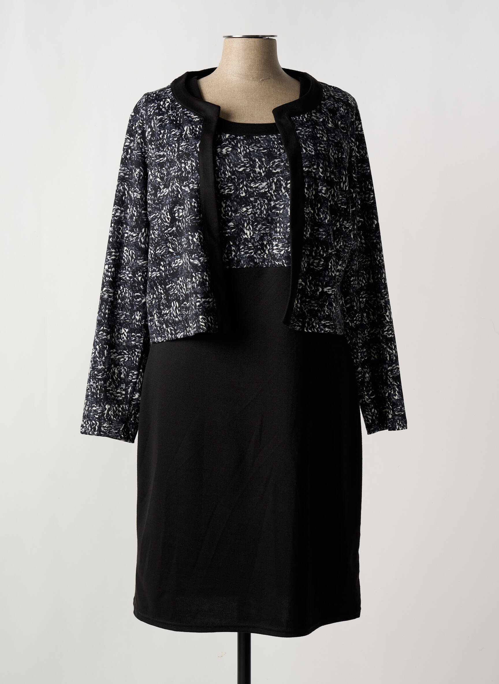 Craquez pour cet ensemble robe de la marque ROMEO POUR JULIETTE, un choix élégant à prix mini pour renouveler votre garde-robe sans vous ruiner. La robe noire sobre est sublimée par une veste structurée à motifs, qui apporte une touche sophistiquée et actuelle à votre silhouette. C’est le bon plan parfait pour allier style et économies lors de toutes vos sorties.