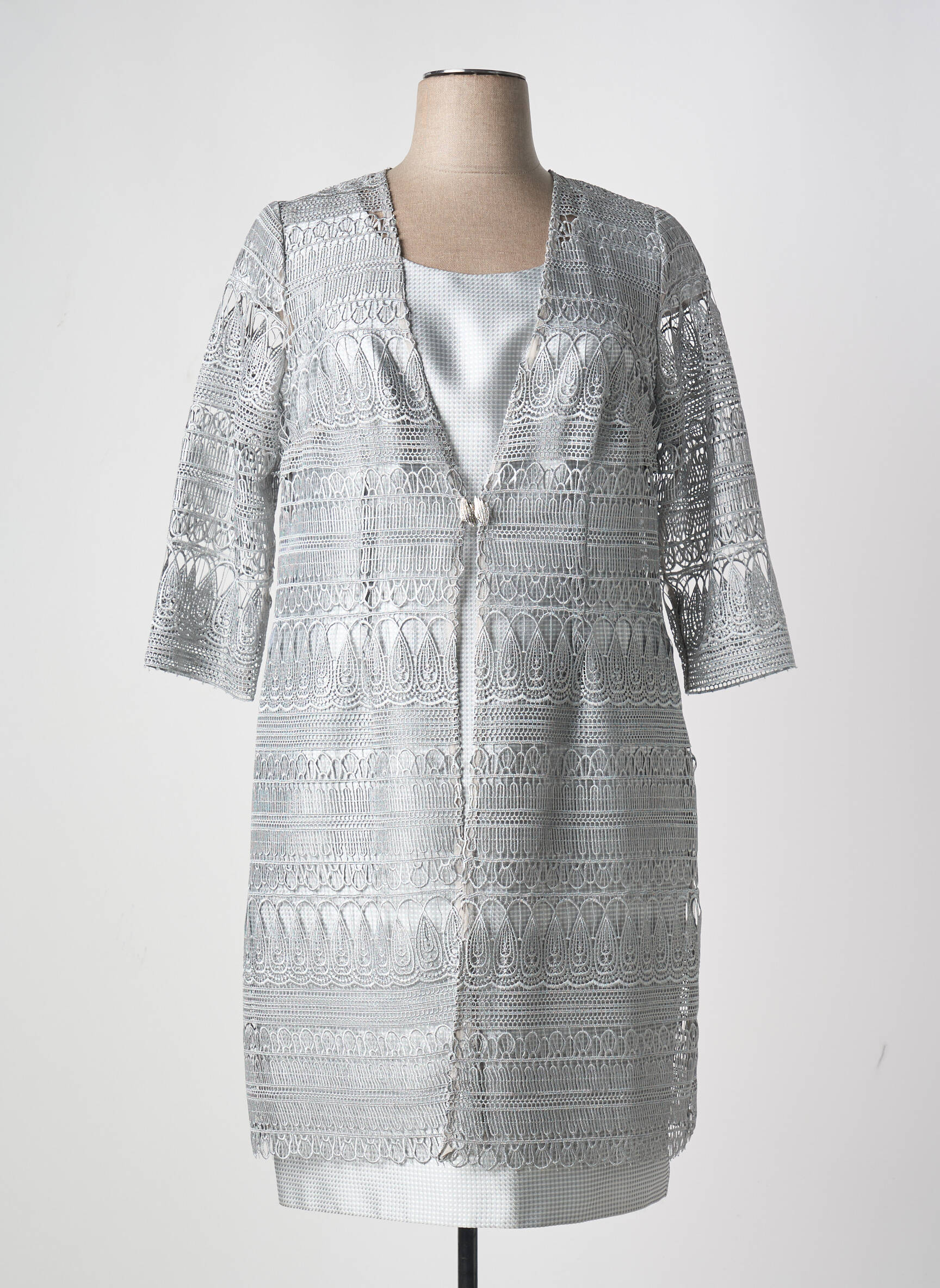 Faites une excellente affaire avec cet ensemble robe signé SONIA PENA, une pièce élégante et raffinée parfaite pour toutes vos occasions spéciales, proposée à un prix défiant toute concurrence. Cet ensemble associe une robe sobre, satinée et lumineuse à une veste délicatement travaillée dans une dentelle au motif graphique argenté, pour une allure sophistiquée sans compromettre votre budget. Idéal pour apporter une touche chic à votre dressing à petit prix, ce modèle offre un look cérémonial parfaitement maîtrisé tout en profitant des bonnes affaires de la mode multi-marques.