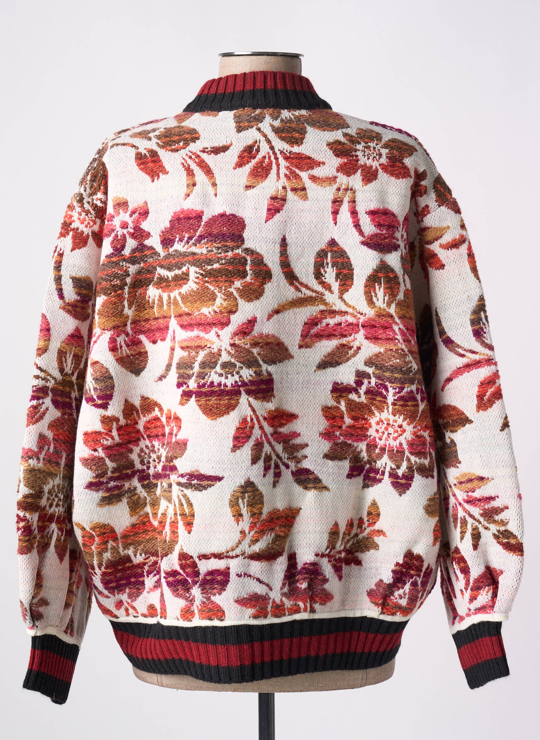 Plongez dans un jardin d'automne avec ce gilet à manches longues de la marque ANGELA DAVIS, une pièce qui marie confort et élégance. Son motif floral luxuriant, rehaussé de teintes rouges, dorées et noires, attire instantanément le regard et évoque une douceur chaleureuse. La texture est à la fois riche et moelleuse, offrant une sensation de bien-être enveloppant, tandis que le col et les bords côtelés ajoutent une touche moderne et raffinée. Ce gilet se prête aussi bien aux sorties décontractées qu'aux moments plus habillés, faisant de lui un incontournable de votre garde-robe.