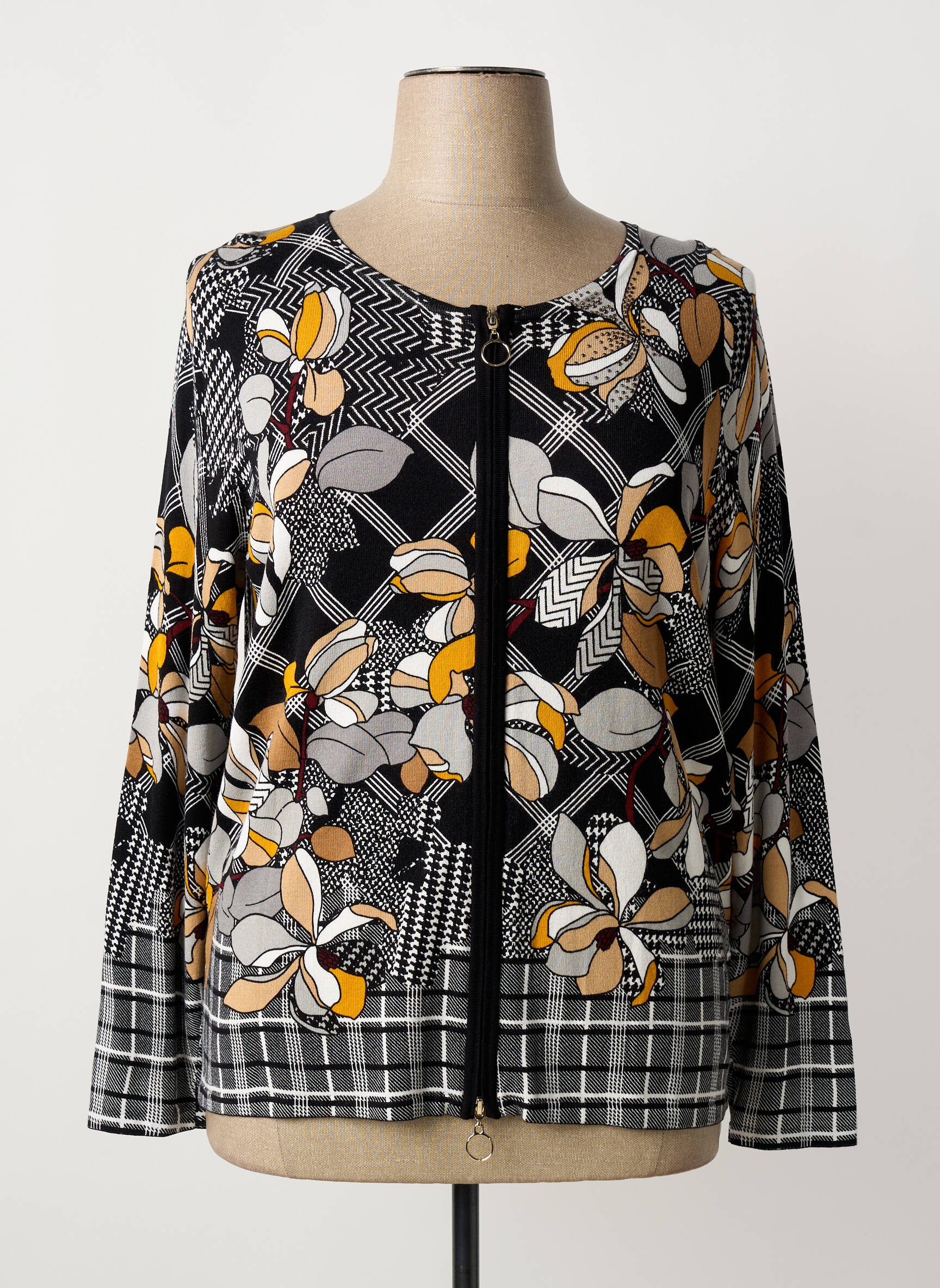 Craquez pour ce gilet à manches longues de la marque BETTY BARCLAY, une véritable affaire à saisir pour donner du style à votre vestiaire sans vous ruiner. Son imprimé graphique mêle subtilement des motifs floraux colorés à des carreaux modernes, apportant une touche d’originalité et de dynamisme à vos tenues. Sa fermeture zippée pratique souligne un look à la fois élégant et décontracté, parfait pour aller au bureau ou pour vos sorties du week-end. Succombez à ce modèle tendance et profitez d’un rapport qualité-prix irrésistible grâce à notre sélection déstockage.