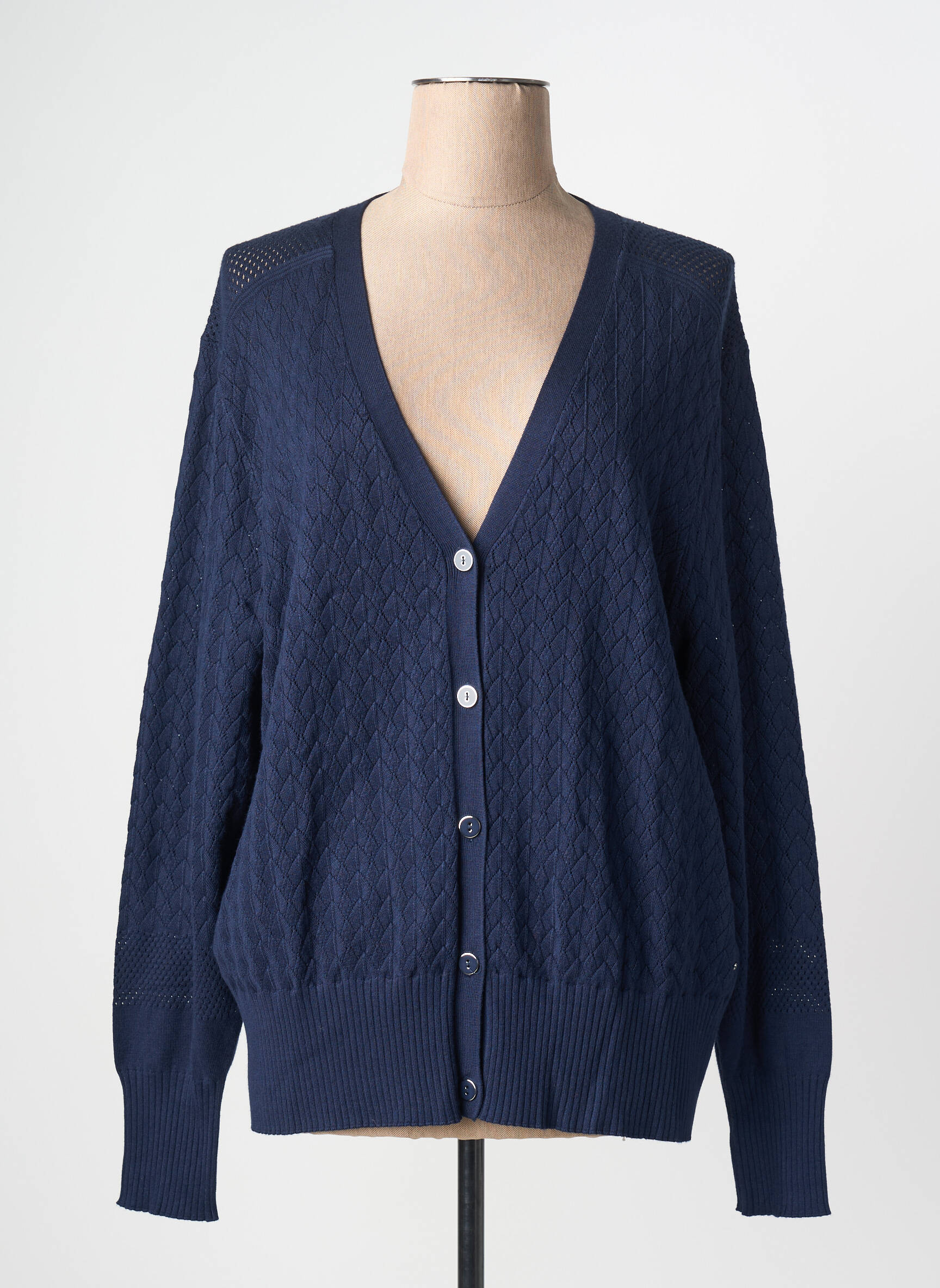 Profitez d’un véritable bon plan avec ce gilet manches longues de la marque CHRISTINE LAURE, parfait pour ajouter une touche élégante à vos tenues à petit prix. Son coloris bleu marine intemporel, son tricot à relief subtil et sa coupe confortable en font un choix idéal pour toutes les saisons, que vous le portiez ouvert ou boutonné selon vos envies. Les finitions en maille côtelée sur le bas et aux poignets apportent la touche finale à ce basique indispensable que vous retrouvez ici à prix doux.