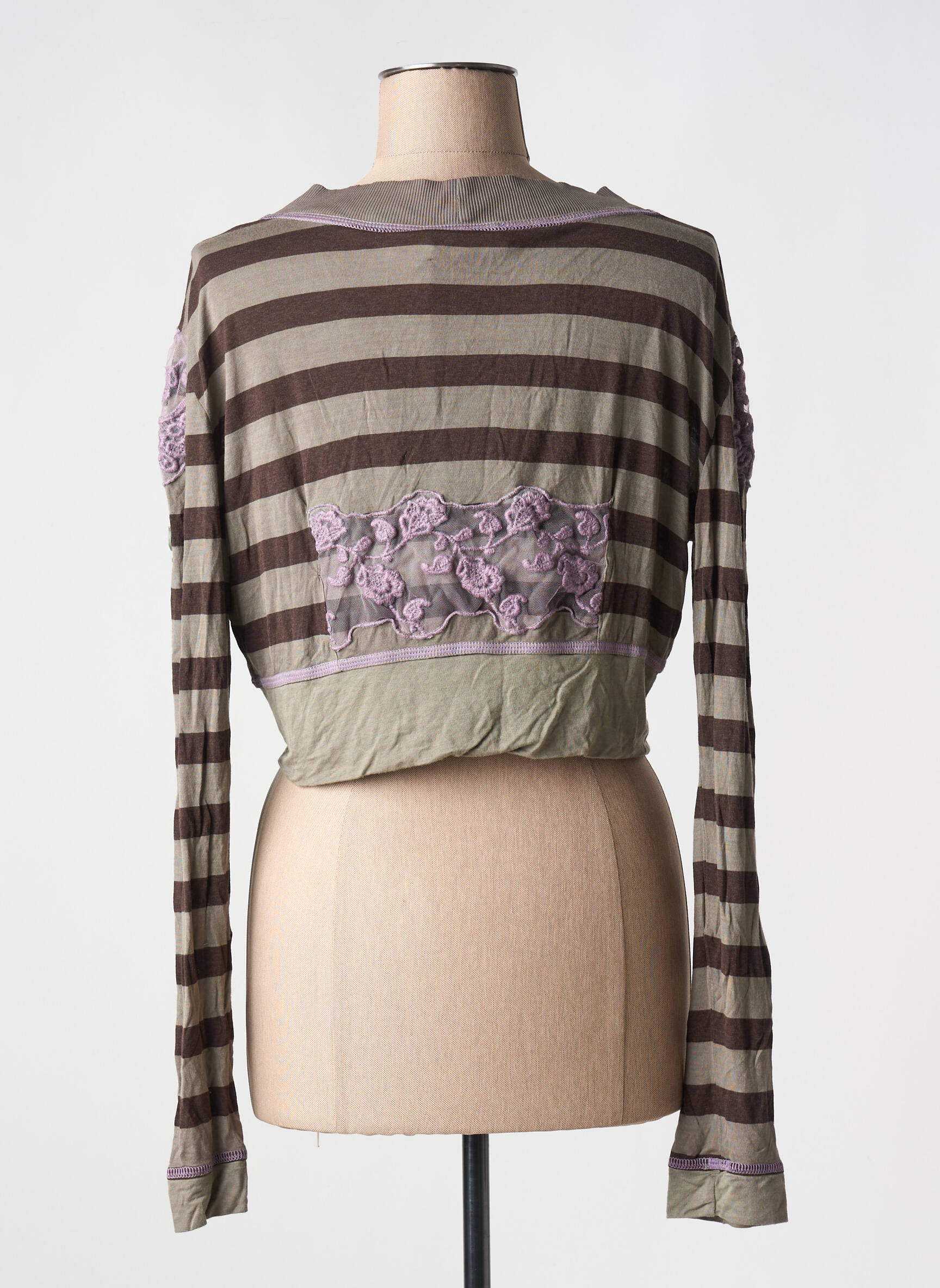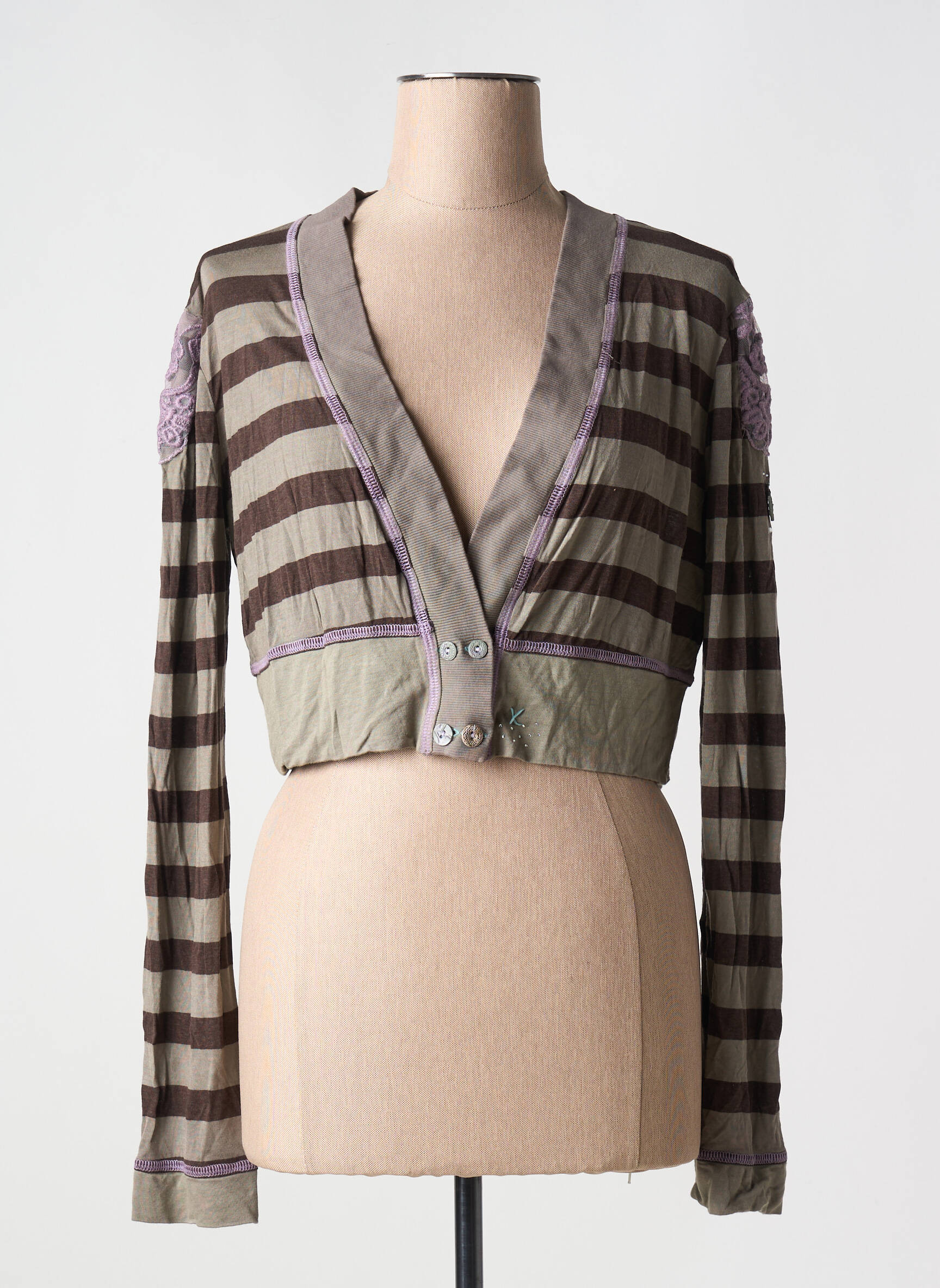 Profitez d’un bon plan mode avec ce gilet manches longues signé ELISA CAVALETTI, une pièce tendance à prix mini idéale pour rehausser votre look sans vous ruiner. Sa coupe courte et originale, rehaussée de rayures dans les tons marron et taupe, apporte une touche moderne et décontractée à toutes vos tenues. Les finitions contrastées au col et à la base ainsi que les boutons décoratifs à l’avant soulignent son côté unique et raffiné, tout en offrant une allure féminine et sophistiquée, accessible à petit prix.