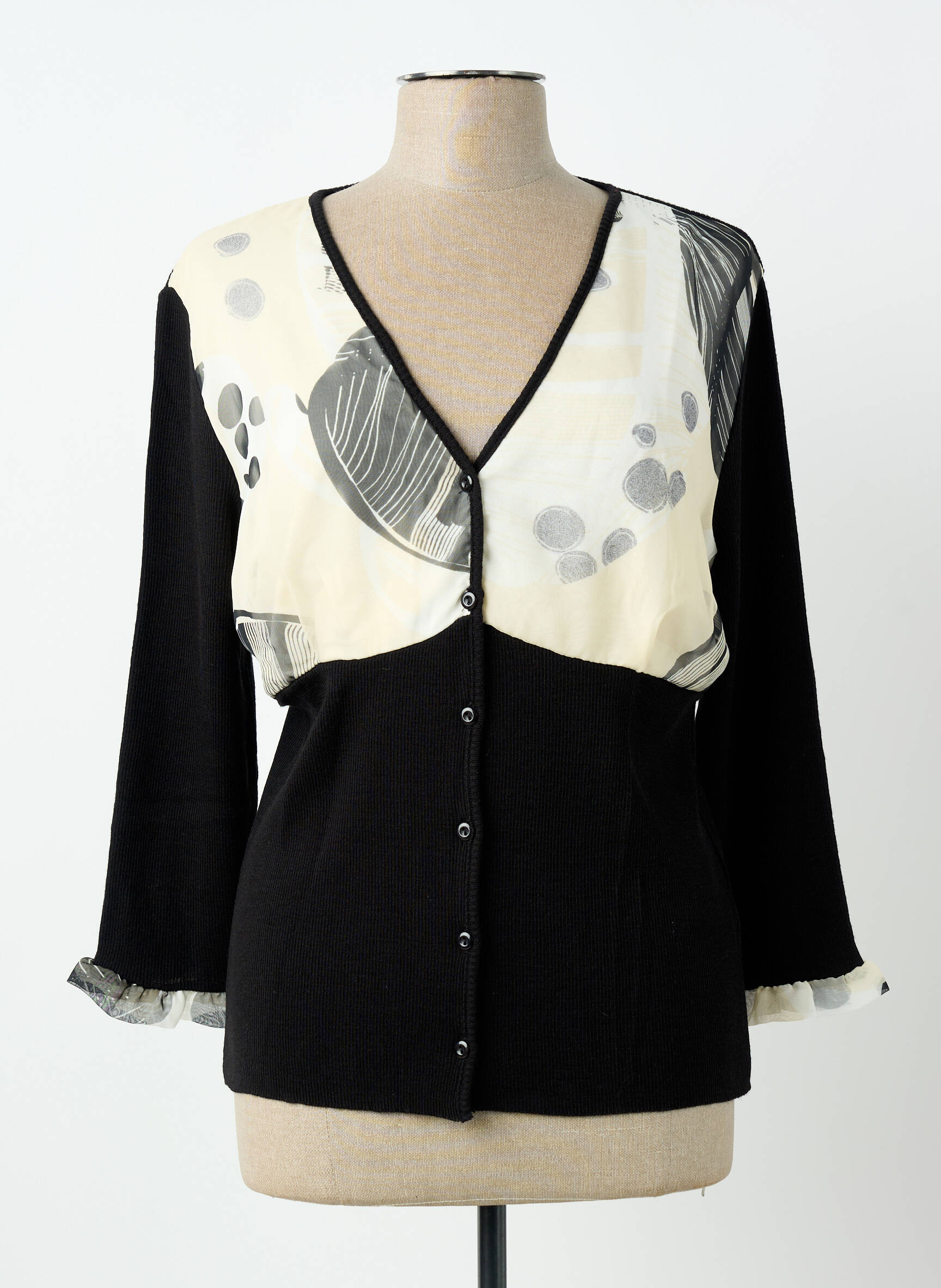 Profitez d’un vrai bon plan avec ce gilet manches longues signé INFINITIF pour femme, à l’esprit graphique et moderne. Son jeu de contraste entre le noir profond et les touches claires imprimées au niveau du buste et des manches apporte une touche d’originalité à un modèle facile à porter au quotidien. Doté d’une coupe féminine et d’une finition boutonnée sur le devant, il s’impose comme la pièce idéale pour rehausser vos tenues à petit prix, tout en affichant un style unique.