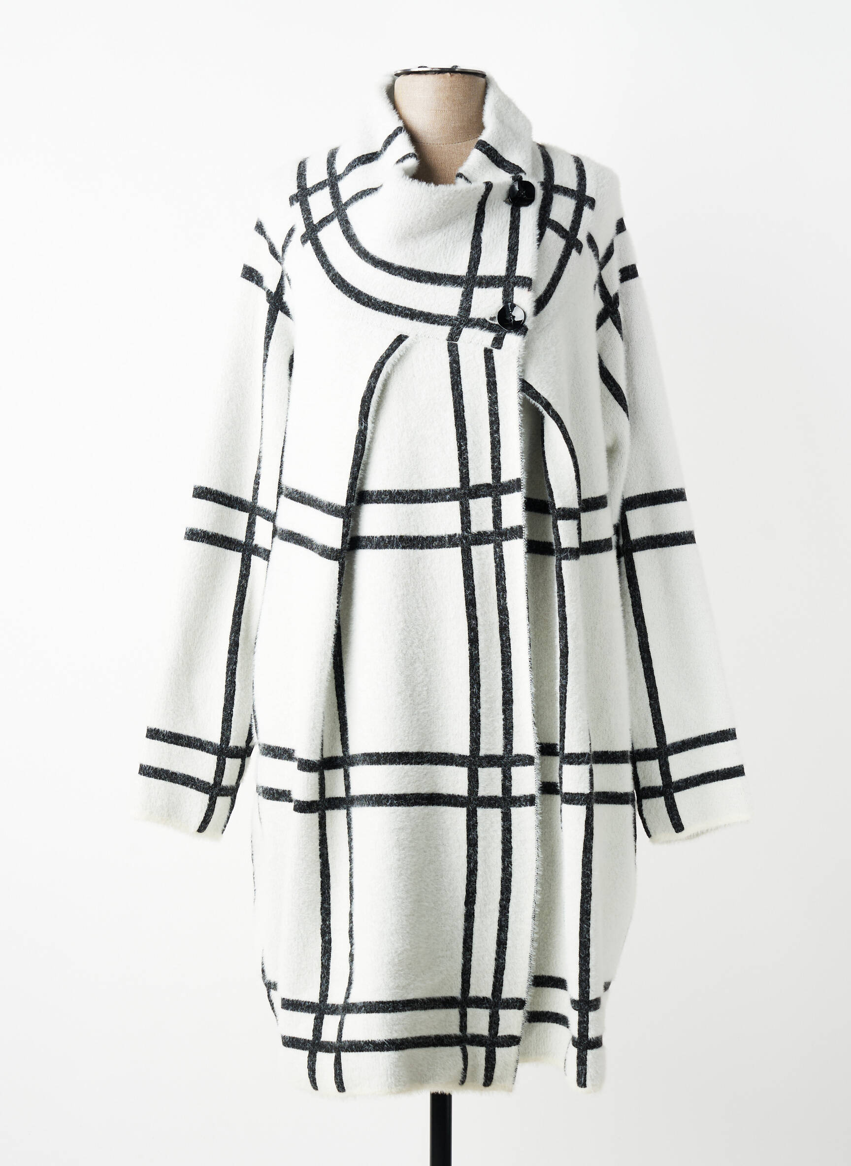 Profitez d’une offre exceptionnelle sur ce gilet à manches longues de la marque JOSEPH RIBKOFF, parfait pour ajouter une touche élégante à votre garde-robe sans vous ruiner. Ce modèle séduit par son motif à grands carreaux noirs sur fond blanc, son col travaillé au joli drapé et sa coupe moderne qui tombe joliment pour une allure sophistiquée et confortable. Voilà un bon plan à ne pas manquer pour rester stylée à prix doux !