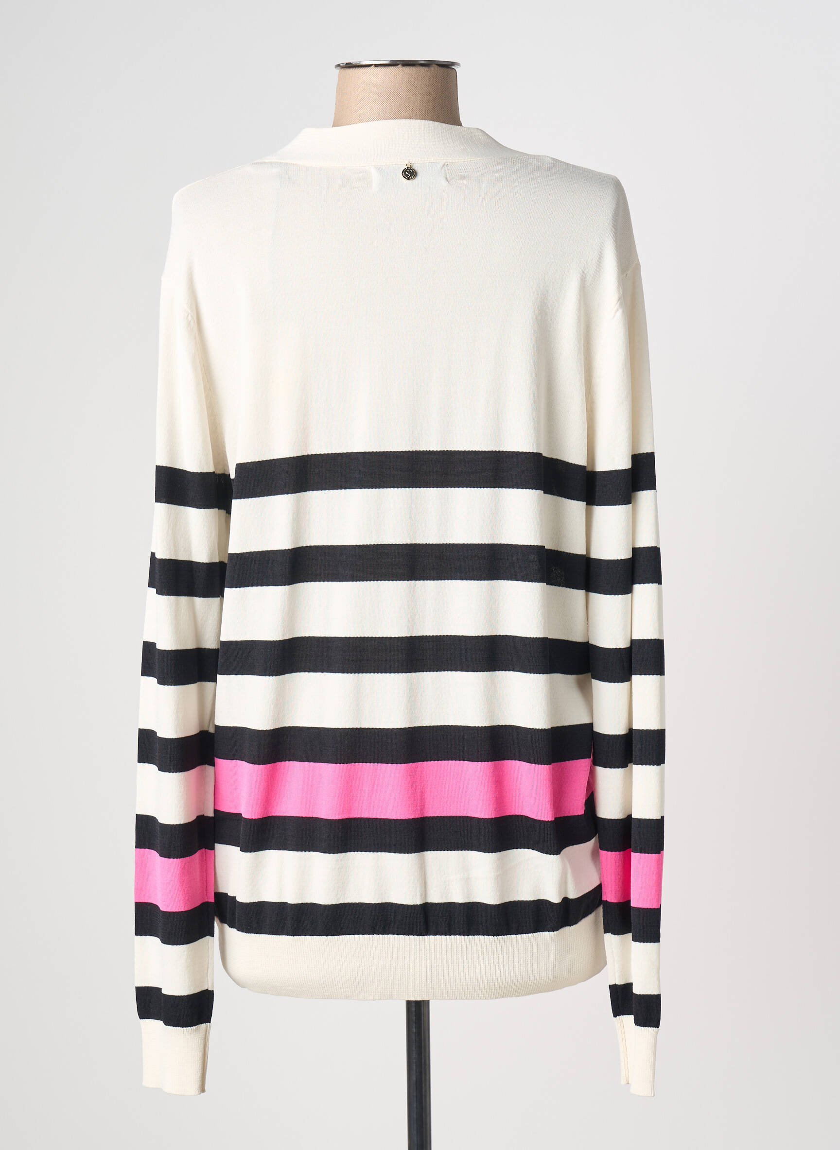Saisissez l'opportunité de vous offrir ce magnifique gilet manches longues LOLA CASADEMUNT à prix mini, idéal pour accessoiriser vos tenues avec originalité sans vous ruiner. Sa coupe intemporelle associée à un joli jeu de rayures noires et blanches rehaussé de touches de rose vif lui donne une allure moderne et pétillante, parfaite pour dynamiser votre look au quotidien. Profitez vite de ce bon plan mode pour apporter une note tendance et élégante à votre dressing !
