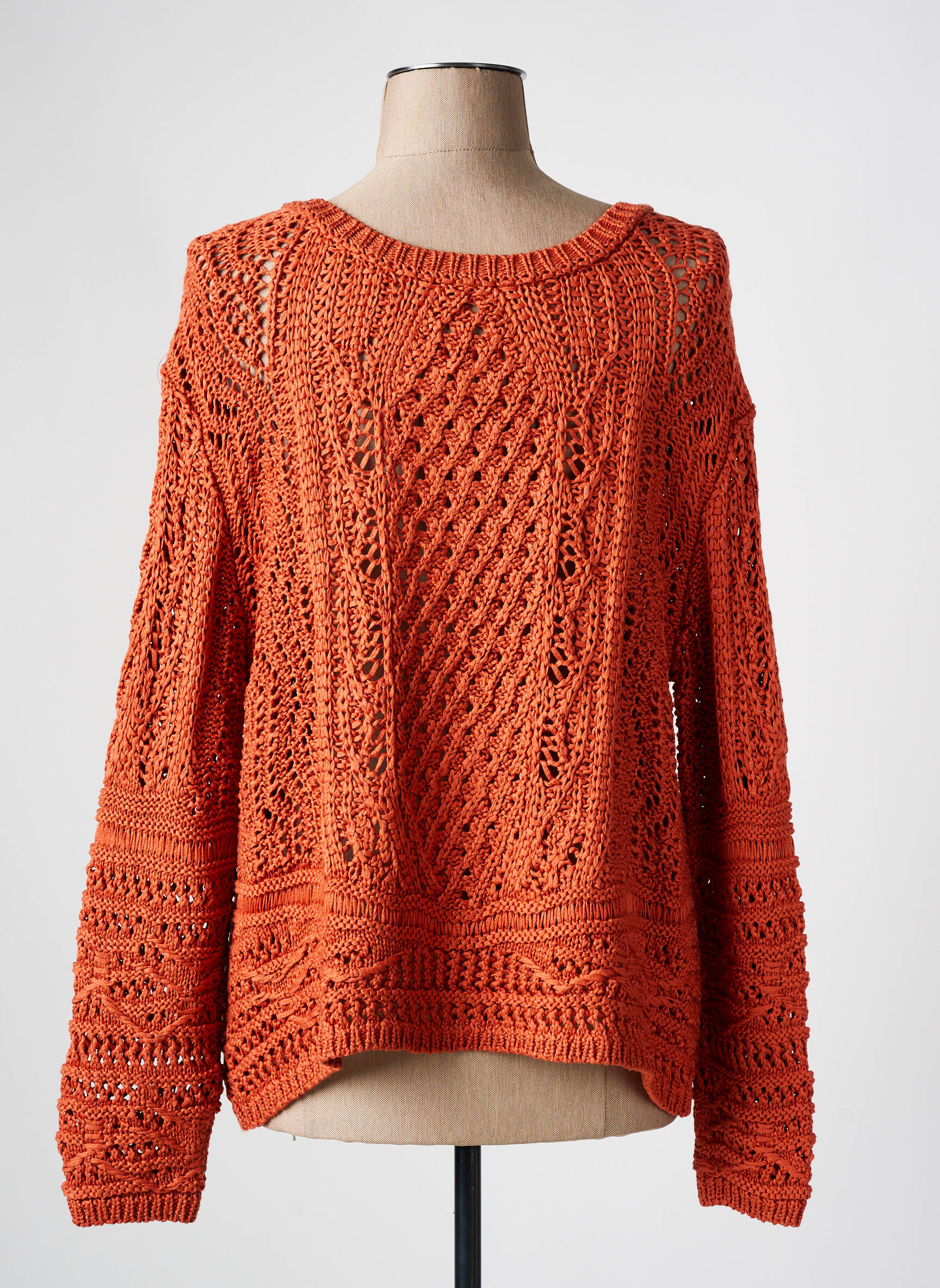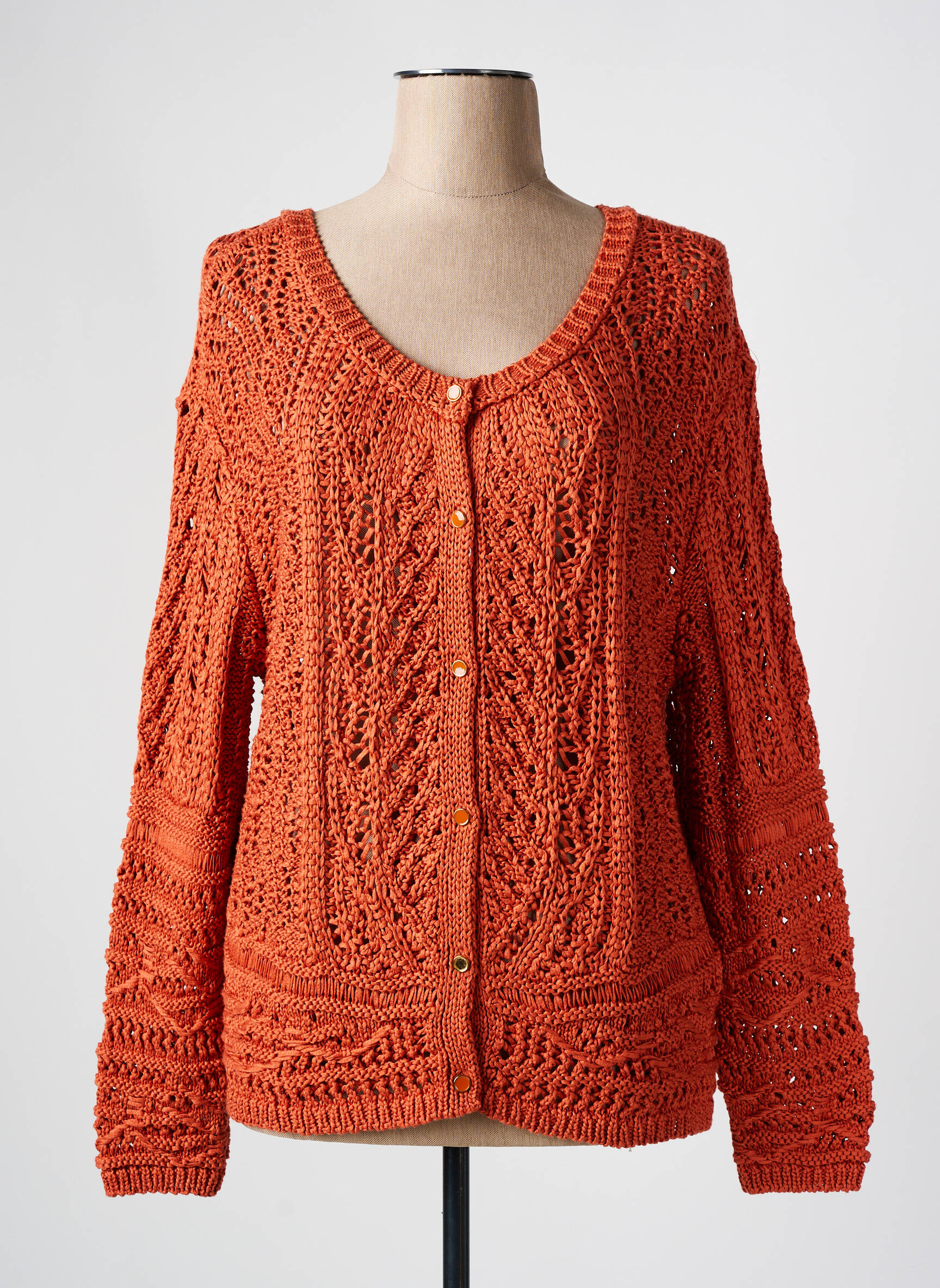 Profitez d’un véritable bon plan mode avec ce gilet manches longues signé MAISON CAPTAIN, une pièce tendance au prix mini qui séduit par son tricot ajouré et sa couleur orange éclatante, idéale pour dynamiser toutes vos tenues. Son travail de maille fantaisie lui apporte un style unique et une touche artisanale, parfait pour celles qui recherchent à la fois originalité et petit prix sans compromis sur le look.