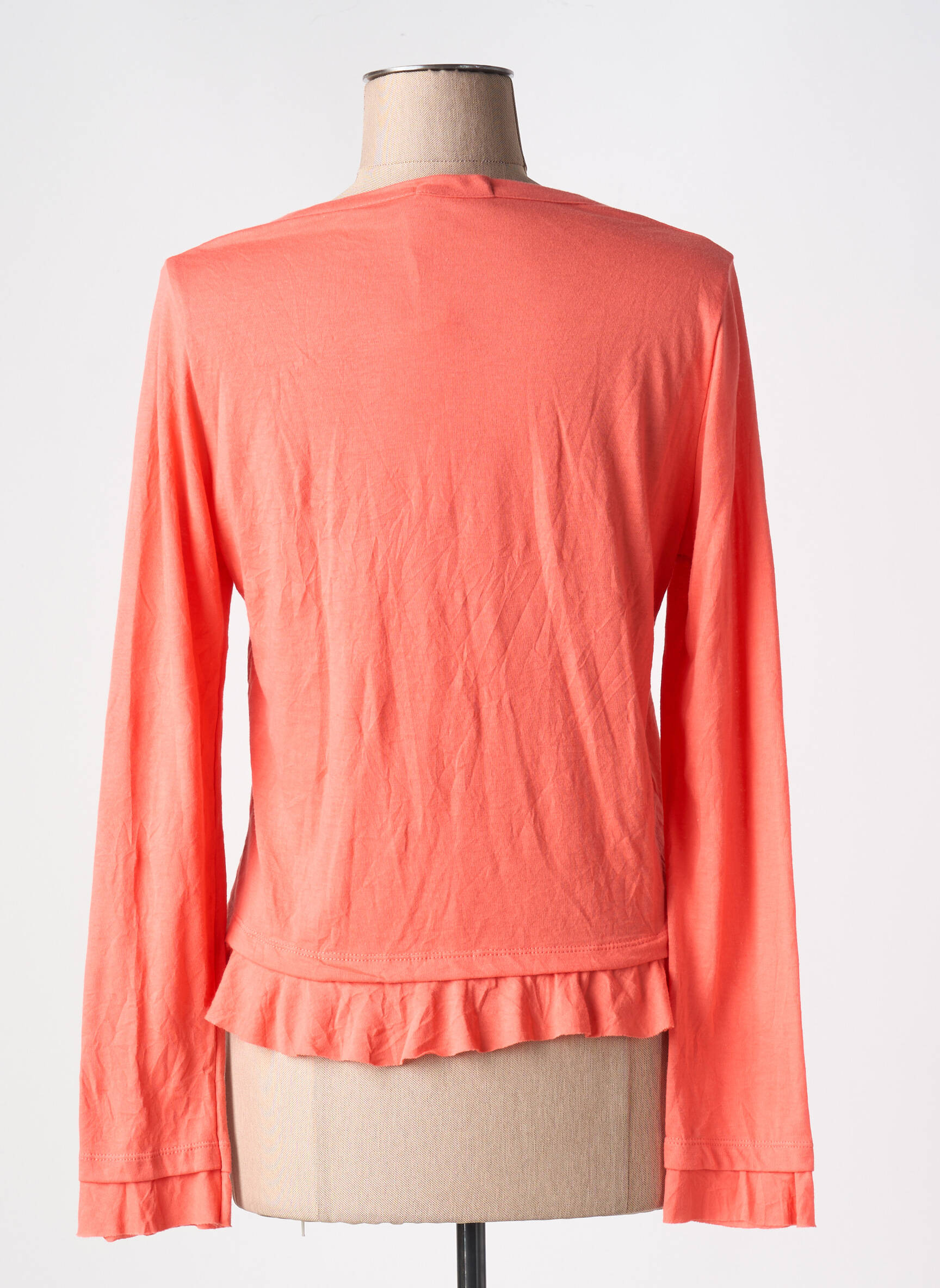 Profitez d'une belle occasion à petit prix avec ce gilet manches longues signé MALOKA, parfait pour apporter une touche de fraîcheur et de féminité à votre garde-robe grâce à sa teinte corail lumineuse et ses jolis détails de volants à la base, rehaussés de petits nœuds délicats. Son design boutonné et sa coupe légèrement ajustée en font un allié idéal pour toutes vos tenues du quotidien, tout en faisant rimer style et économies.