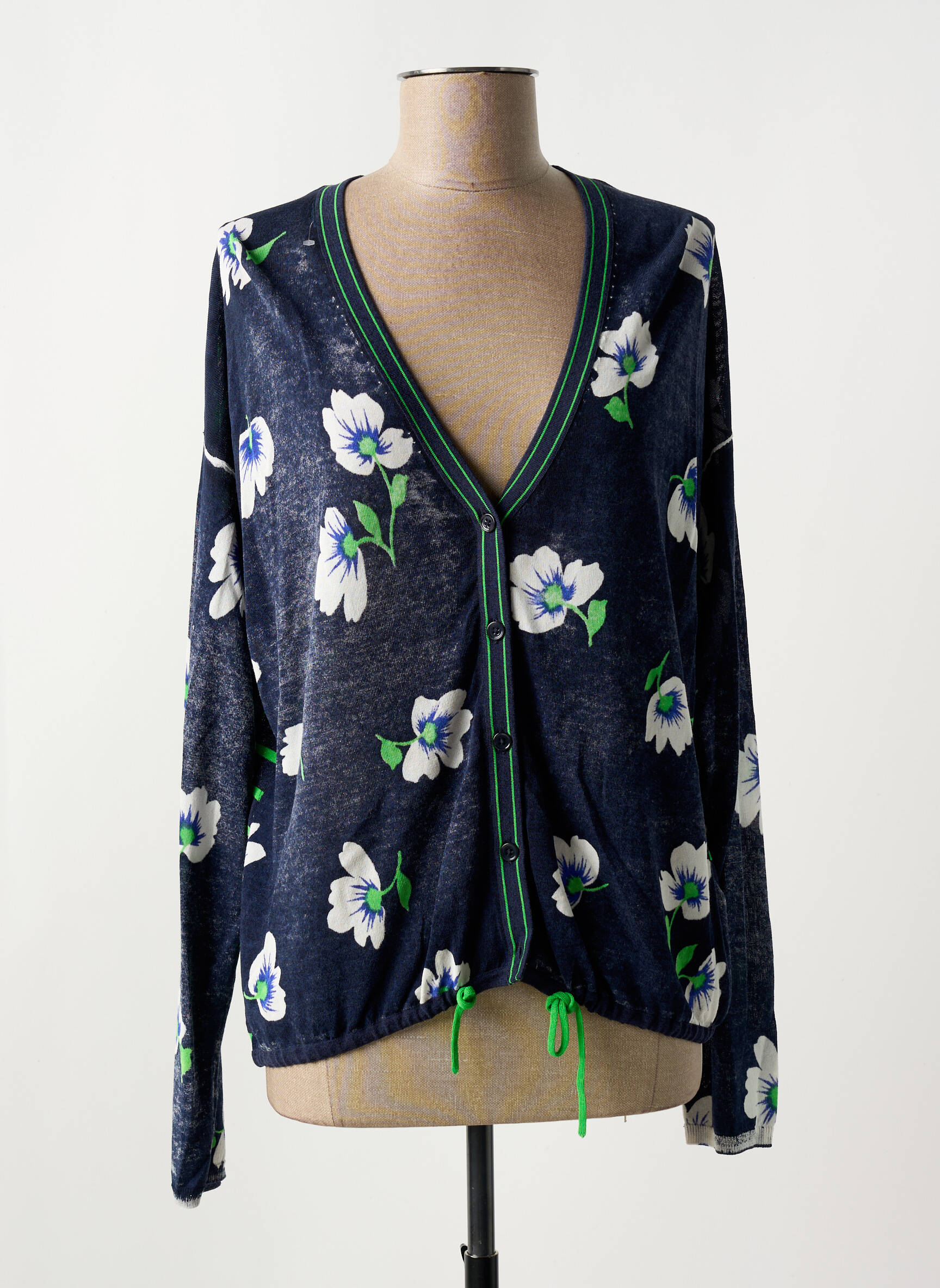 Craquez pour ce gilet manches longues OUI, une véritable pépite à petit prix qui allie style et économies. Son tissu léger et fluide bleu nuit s’illumine d’un imprimé floral blanc et vert très printanier, tandis que le décolleté en V et la fermeture par petits boutons ajoutent une touche féminine moderne. Avec ses détails contrastés verts et bleu marine au niveau des bordures, ce gilet est parfait pour dynamiser une tenue classique, sans pour autant vous ruiner. Saisissez ce bon plan pour égayer votre dressing avec une pièce de marque unique à prix mini !