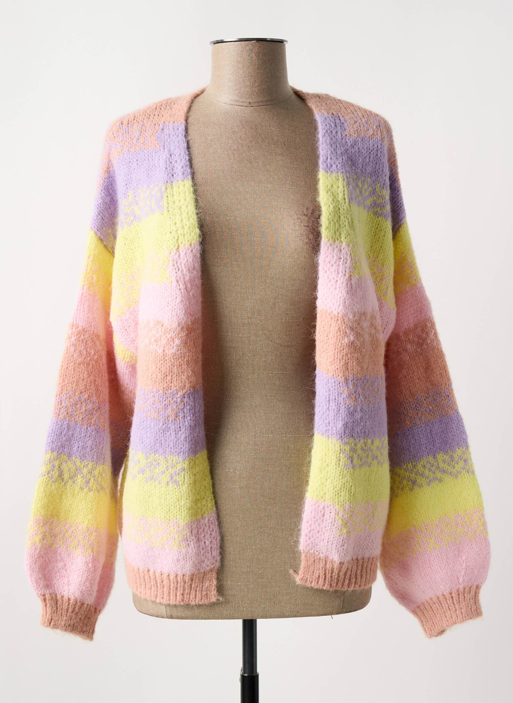 Craquez pour ce gilet manches longues PIECES, une véritable opportunité pour ajouter une touche de douceur à votre dressing tout en maîtrisant votre budget. Son motif à larges rayures pastel mêle des tons de lilas, de jaune, de rose et de pêche, apportant une note acidulée et tendance à vos tenues de saison. Sa maille moelleuse et son style ouvert offrent un confort incomparable et une grande liberté de mouvement, parfait pour superposer sur vos tops préférés quand les températures baissent. Profitez de ce bon plan mode à petit prix pour vous démarquer avec un look frais et coloré sans compromis sur l’économie.