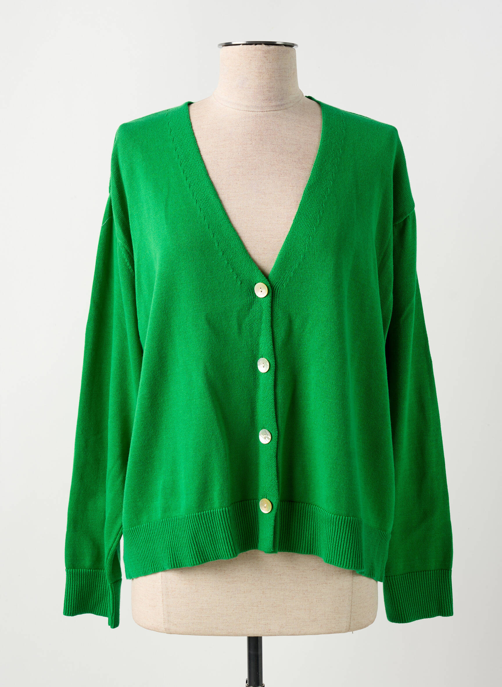 Saisissez une vraie opportunité mode avec ce gilet à manches longues signé SIGNE NATURE, proposé à prix tout doux pour un style tendance sans se ruiner. Ce modèle se distingue par sa coupe décontractée et son joli coloris vert éclatant qui mettra un coup de frais à toutes vos tenues, tandis que son encolure en V et sa patte de boutonnage à boutons contrastants en font un incontournable pour jouer les superpositions selon vos envies.