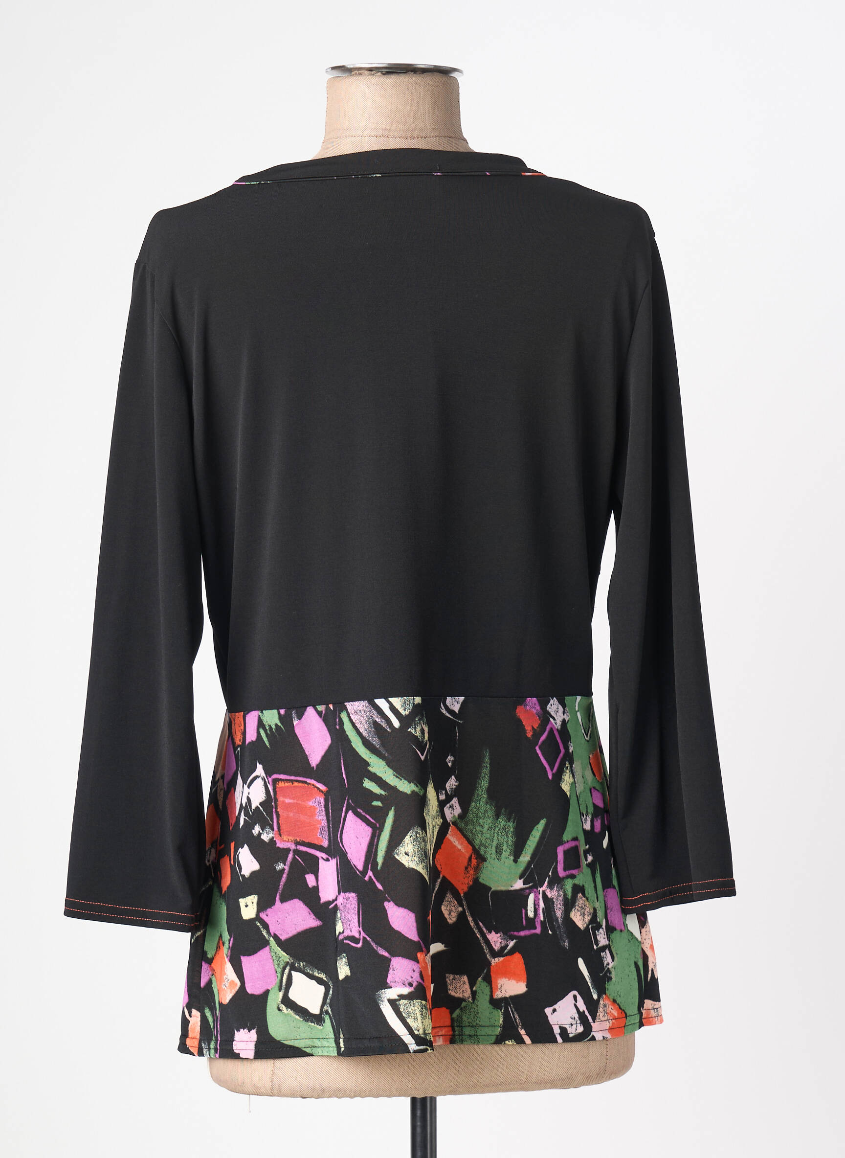 Voici une occasion idéale de compléter votre garde-robe à petit prix avec ce gilet manches longues TELMAIL pour femme, qui offre une allure moderne grâce à son design élégant mariant le noir uni sur le haut et les manches à un imprimé graphique multicolore sur le bas. Sa coupe fluide, rehaussée de boutons et de jolies surpiqûres contrastantes, en fait une pièce tendance facile à porter au quotidien sans se ruiner.