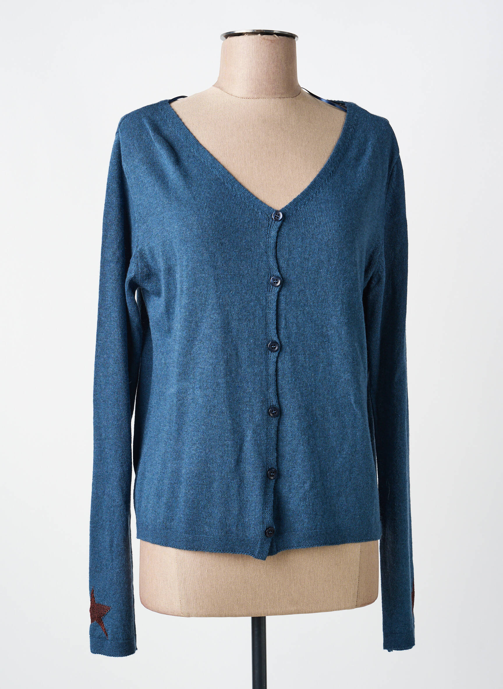 Profitez d’un véritable bon plan avec ce gilet manches longues VOODOO pour femme, proposé à un prix tout doux ! Sa couleur bleu profond et sa coupe ajustée se marient facilement à toutes vos tenues du quotidien. On adore le détail discret de la petite étoile rouge sur la manche, qui apporte une touche originale sans en faire trop. Léger et confortable, ce gilet boutonné est idéal pour celles qui recherchent style et simplicité à petit prix.