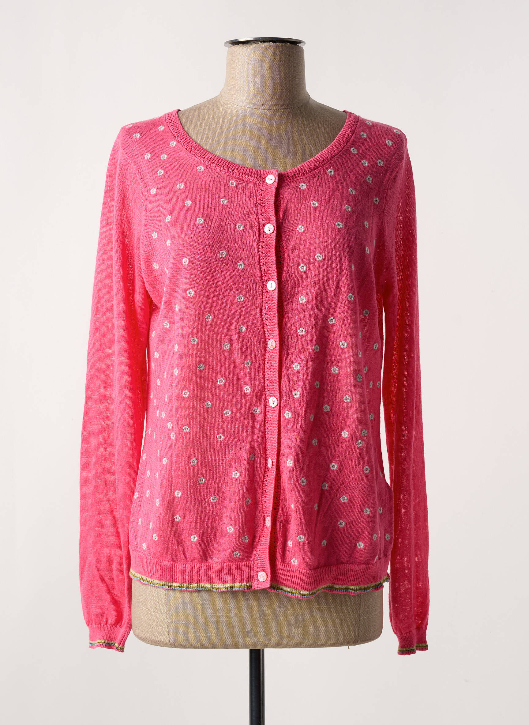 Craquez pour ce gilet manches longues signé WHITE STUFF, un vrai bon plan pour dynamiser votre dressing sans vous ruiner ; son rose éclatant parsemé de petits motifs blancs et sa coupe légèrement loose offrent une touche de fraîcheur et de féminité à petit prix.