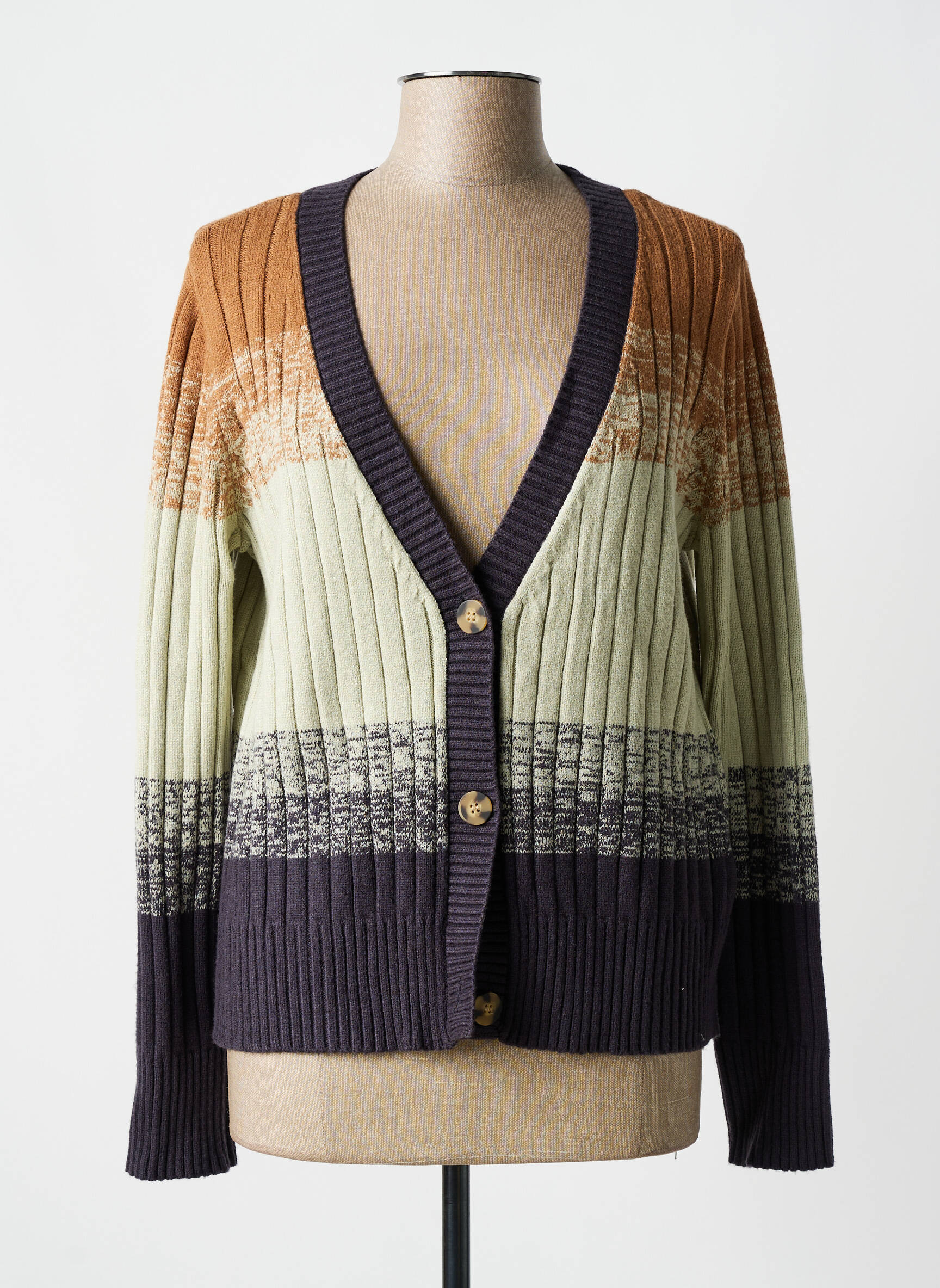 Craquez pour ce gilet manches longues de la marque YEST, un indispensable à petit prix pour réchauffer vos looks de saison sans vous ruiner. Sa maille côtelée associe des teintes chaleureuses allant du marron au crème, rehaussées de touches grises pour un effet graphique moderne, tandis que sa coupe confortable et ses boutons effet bois en font une pièce facile à porter au quotidien. Ce gilet est la parfaite occasion d'ajouter une touche tendance à votre dressing sans faire de compromis sur votre budget.