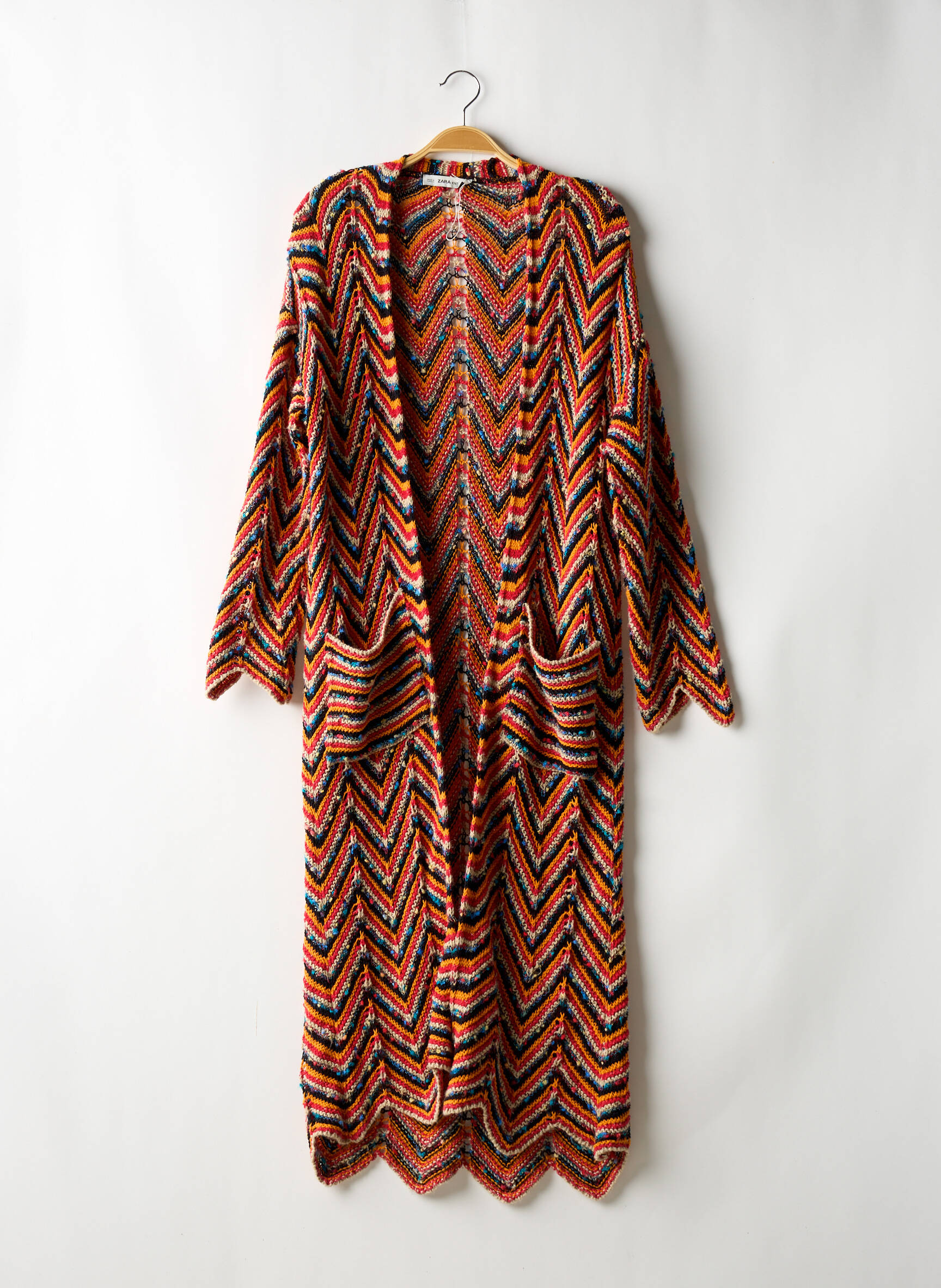 Profitez d’un vrai bon plan avec ce gilet manches longues ZARA pour femme, une pièce originale à prix mini qui donnera du pep’s à votre dressing sans vous ruiner. Son imprimé chevron multicolore attire immédiatement le regard et illumine vos tenues tout en restant facile à porter au quotidien. Sa coupe longue et décontractée vous enveloppe avec style tandis que les grandes poches ajoutent une touche pratique et trendy. Voilà une occasion idéale de craquer pour un modèle emblématique de la marque à prix tout doux.