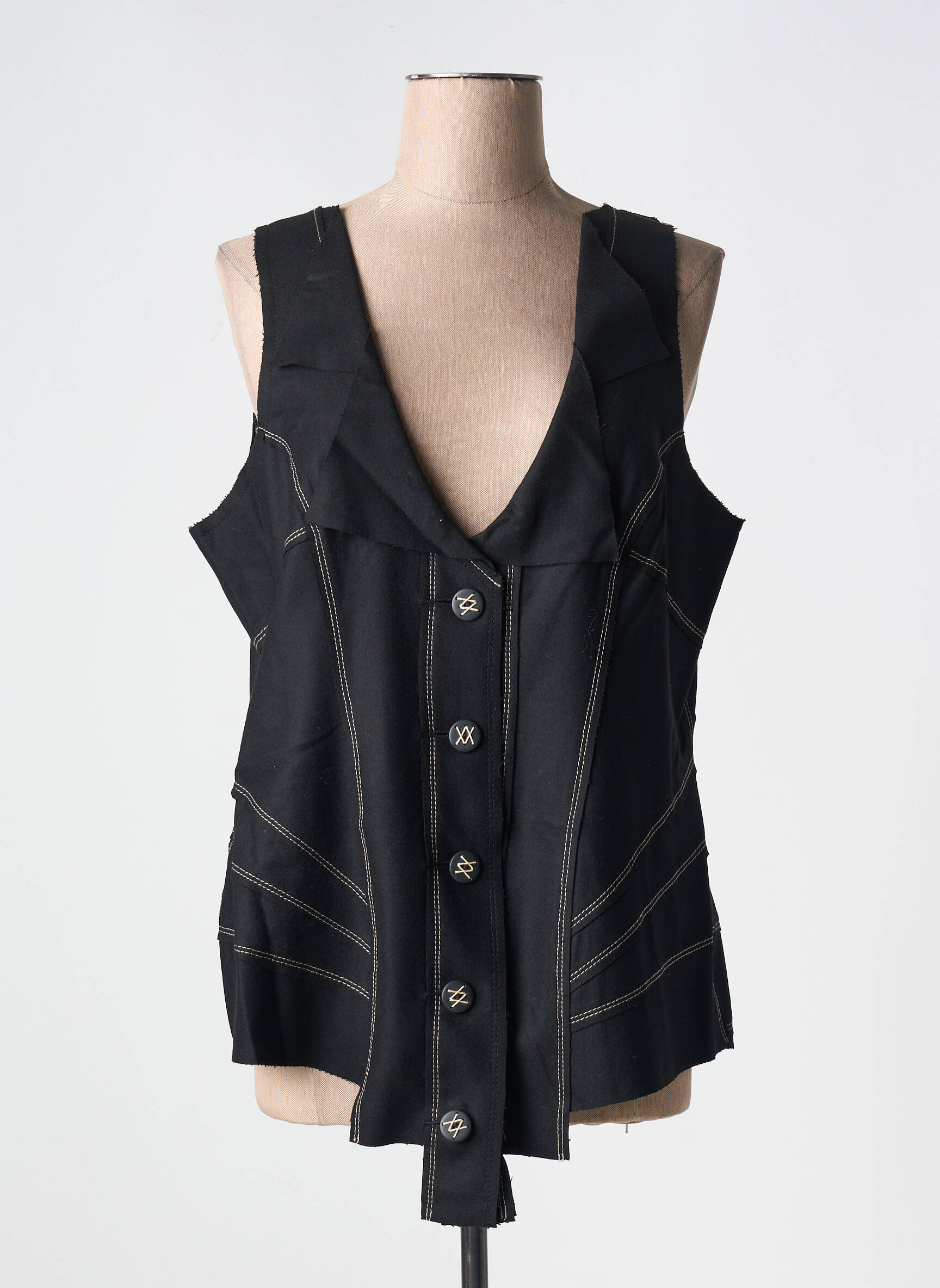Craquez pour ce gilet sans manches de la marque ALAIN WEIZ, une pièce à petit prix qui vous permet d’adopter un style chic sans vous ruiner. Son design original se distingue par une coupe légèrement évasée, des lignes de surpiqûres contrastées et de jolis boutons argentés qui attirent l'œil. Il est parfait pour donner du caractère à une tenue tout en respectant votre budget.