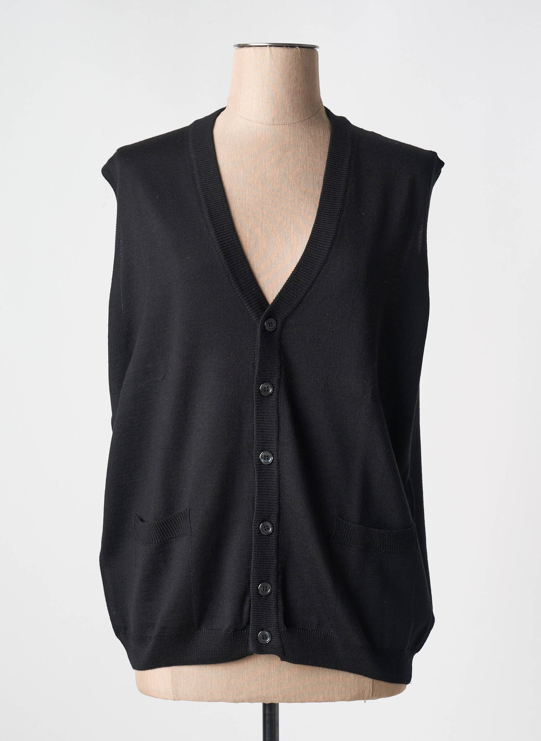Profitez d'une occasion à ne pas manquer avec ce gilet sans manches pour femme de la marque ELLEMME, parfait pour moderniser vos tenues sans vous ruiner. Ce modèle noir intemporel se distingue par sa coupe droite, son encolure en V élégante et sa fermeture à boutons pour un style classique facile à associer. Pratique et confortable avec ses poches plaquées à l'avant, il s'adapte à toutes vos envies pour un look à petit prix.