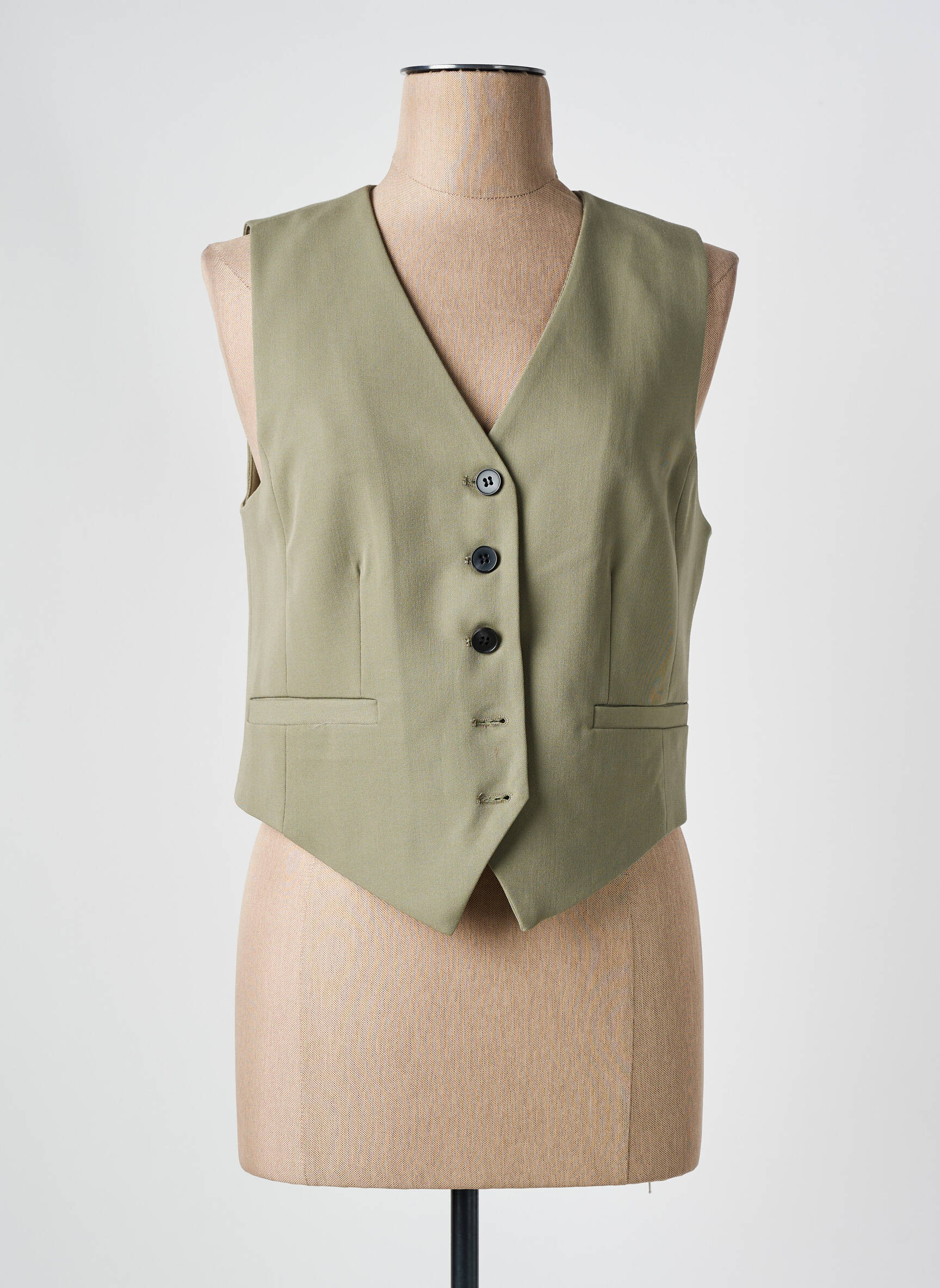Optez pour une touche de style à prix mini avec ce gilet sans manche pour femme de la marque KAFFE, un véritable bon plan mode pour apporter du caractère à vos looks. Sa coupe élégante, son col en V profond et ses boutons contrastants allient raffinement et modernité, tandis que la teinte kaki claire s’intègre facilement à toutes vos tenues. Ce modèle présente une allure structurée grâce à ses deux fausses poches passepoilées et sa finition impeccable, parfait pour sophistiquer un simple jean ou compléter une tenue de bureau sans vous ruiner.