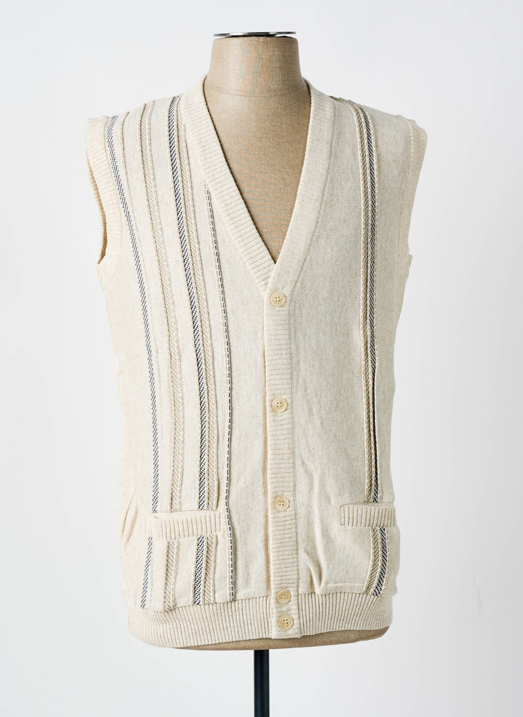 Profitez d’un bon plan mode avec ce gilet sans manche pour femme signé LOUIS VICTOR, une pièce élégante à petit prix idéale pour donner du style à toutes vos tenues. Ce modèle à la couleur crème douce offre une allure vintage avec ses rayures verticales contrastantes sur le devant et une fermeture boutonnée très pratique. Les poches plaquées ajoutent une touche de fonctionnalité à ce gilet qui combine confort et style, parfait pour compléter une chemise ou un haut léger tout en réalisant une belle économie.