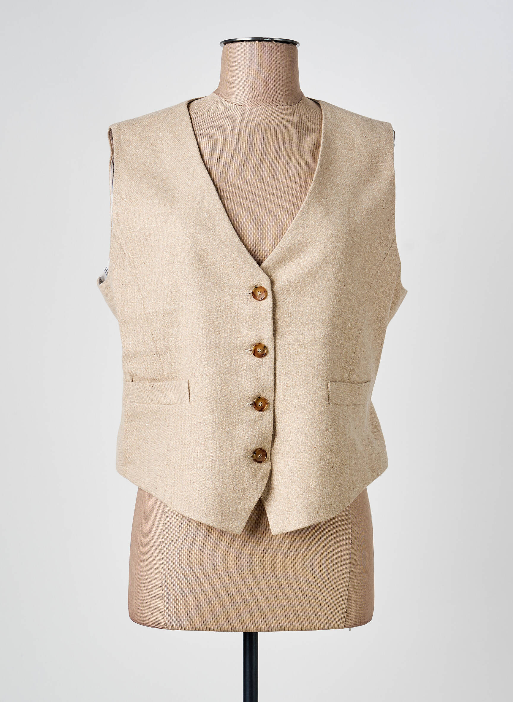 Craquez pour le gilet sans manche SOPHIE + LUCIE, un incontournable à prix mini qui donne tout de suite une touche élégante et actuelle à votre look. Sa coupe structurée, ses jolis boutons effet bois et sa teinte beige claire en font un allié facile à porter sur une chemise ou un pull fin et à mixer autant pour le bureau que pour un style décontracté. C’est la pièce idéale pour adopter une allure tendance sans se ruiner !