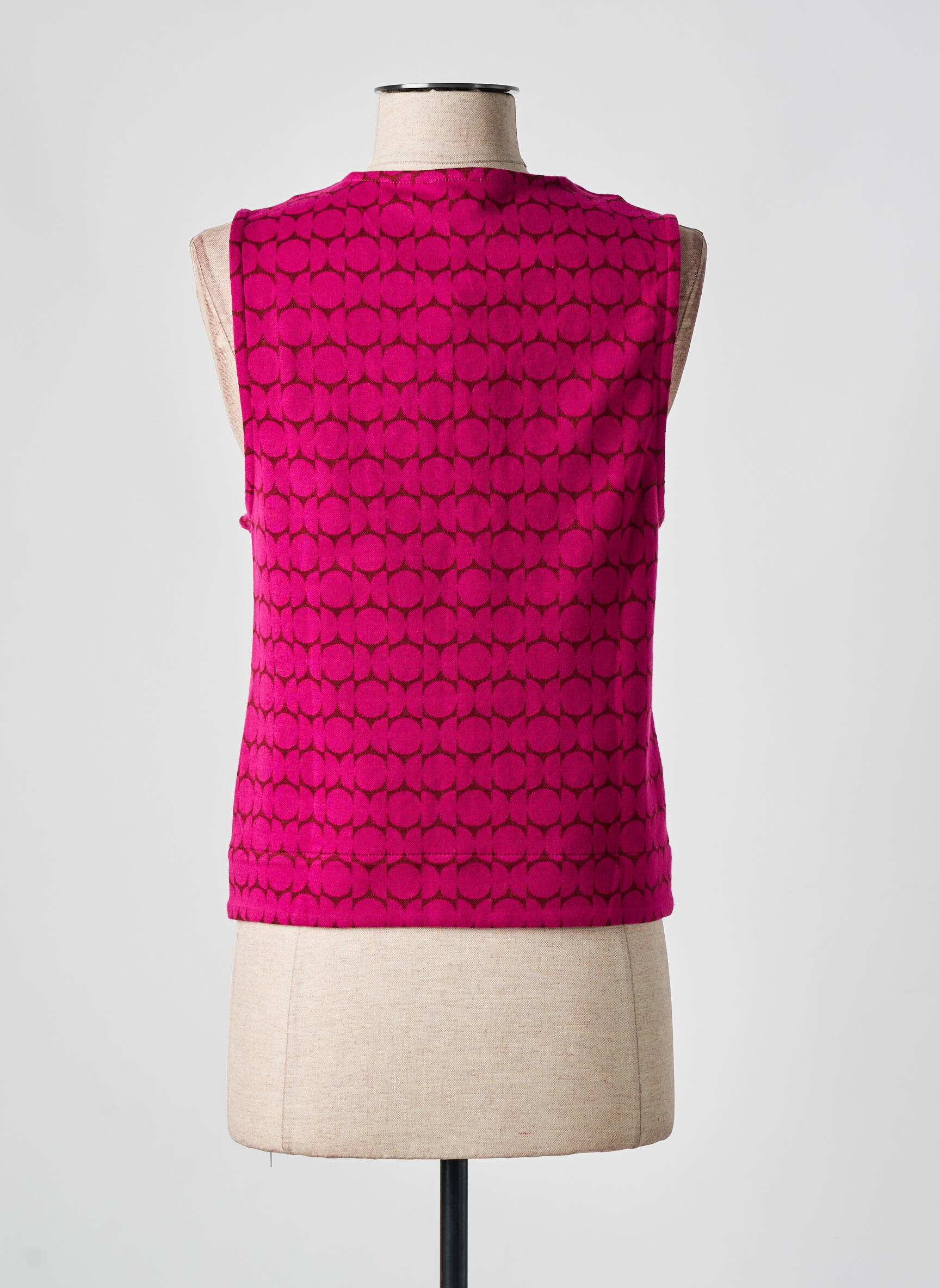 Imaginez un gilet qui transforme instantanément une silhouette classique en une déclaration audacieuse : ce modèle sans manches de la marque ZILCH pour femme dévoile un rose vif éclatant rehaussé d’un motif géométrique subtil en ton sur ton, avec un col V profond et une coupe ajustée qui souligne élégamment la taille, tandis que ses trois boutons assortis apportent une touche de raffinement intemporel.