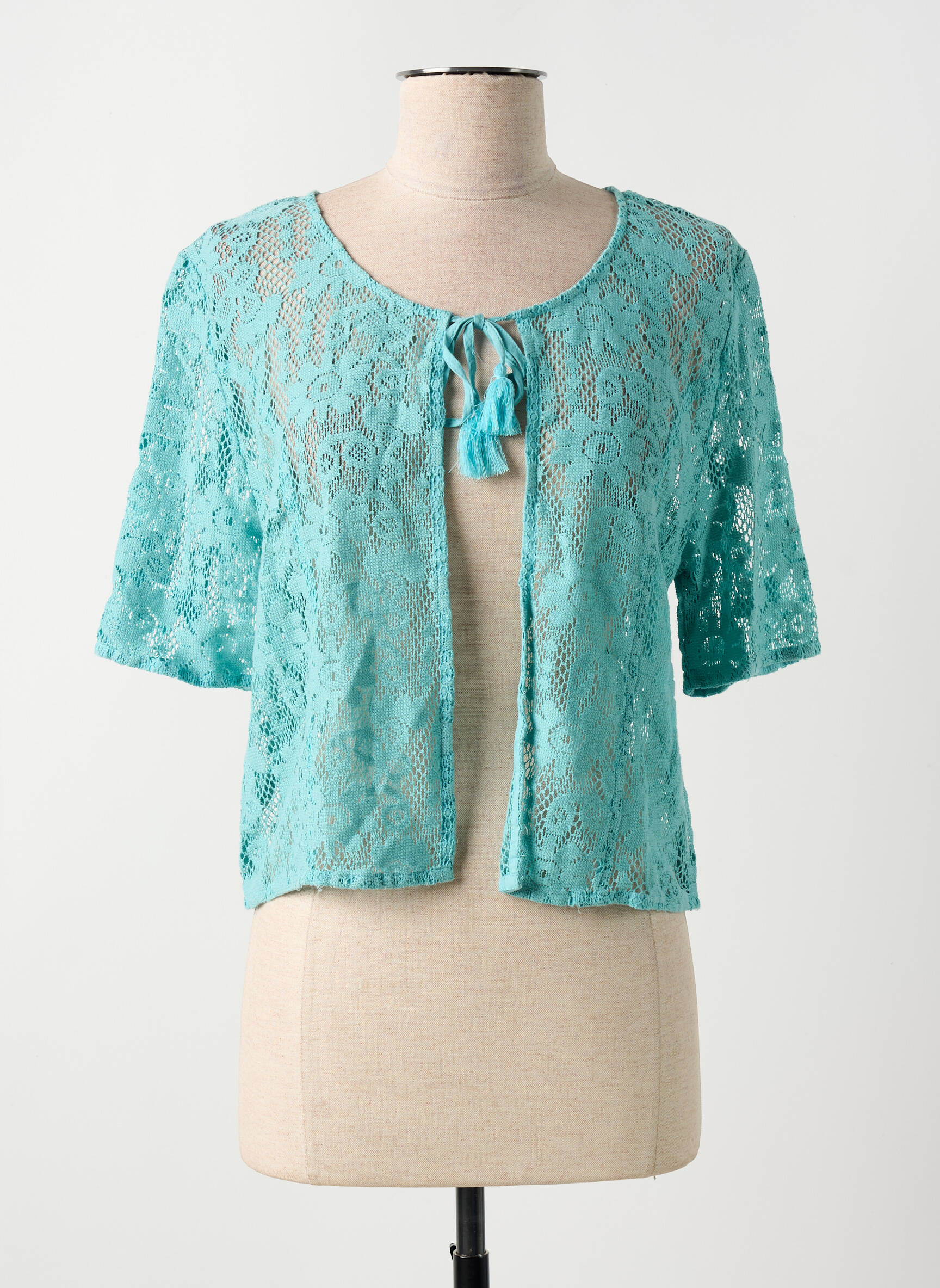 Craquez pour ce gilet manches courtes signé AGATHE & LOUISE, une pièce légère et féminine idéale pour sublimer vos tenues sans vous ruiner. Sa jolie dentelle turquoise apporte une touche de fraîcheur et d’élégance, parfaite pour accompagner une robe d’été ou un débardeur en toute simplicité. Son petit nœud à l’encolure et sa coupe courte offrent une allure tendance à prix mini, à saisir rapidement pour un look raffiné à petit budget.